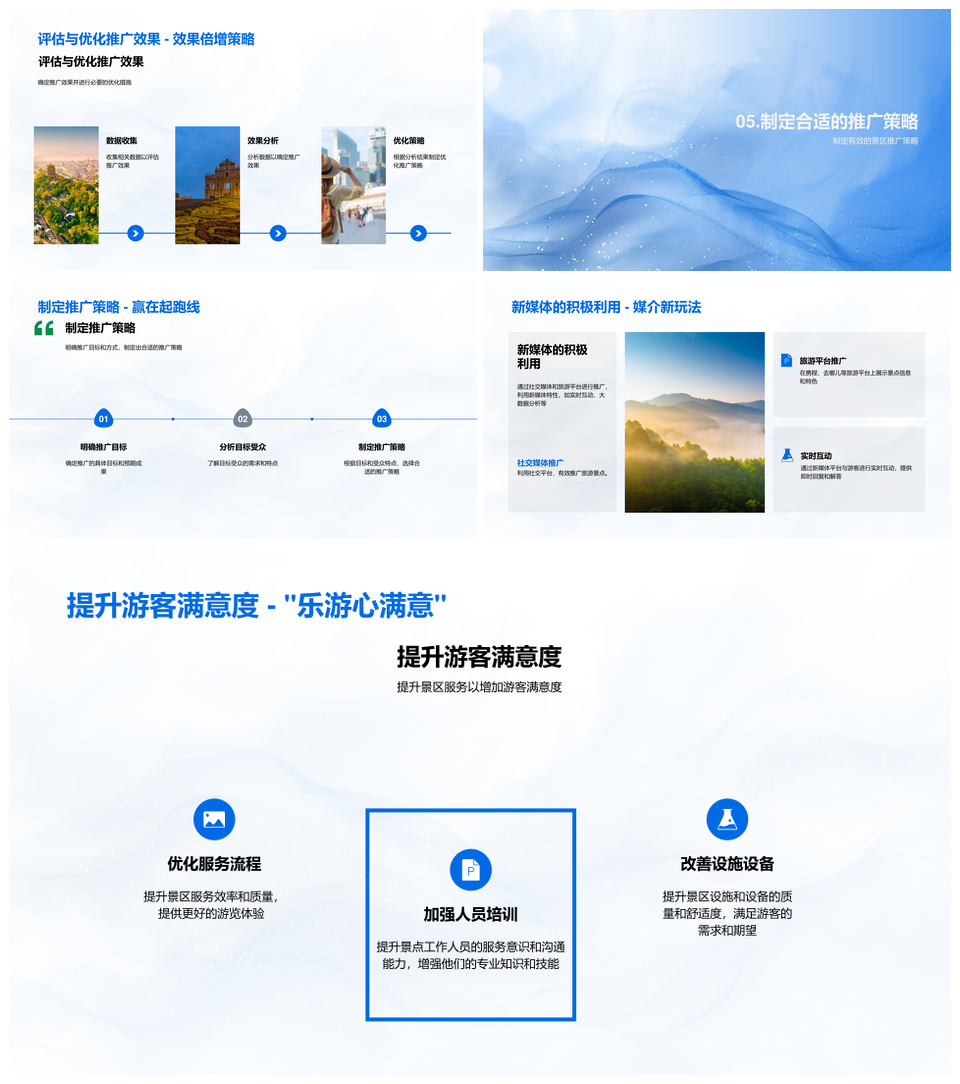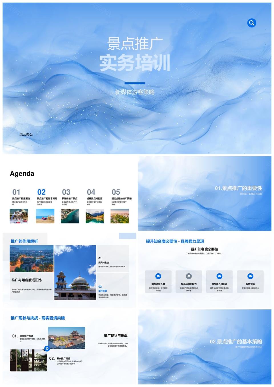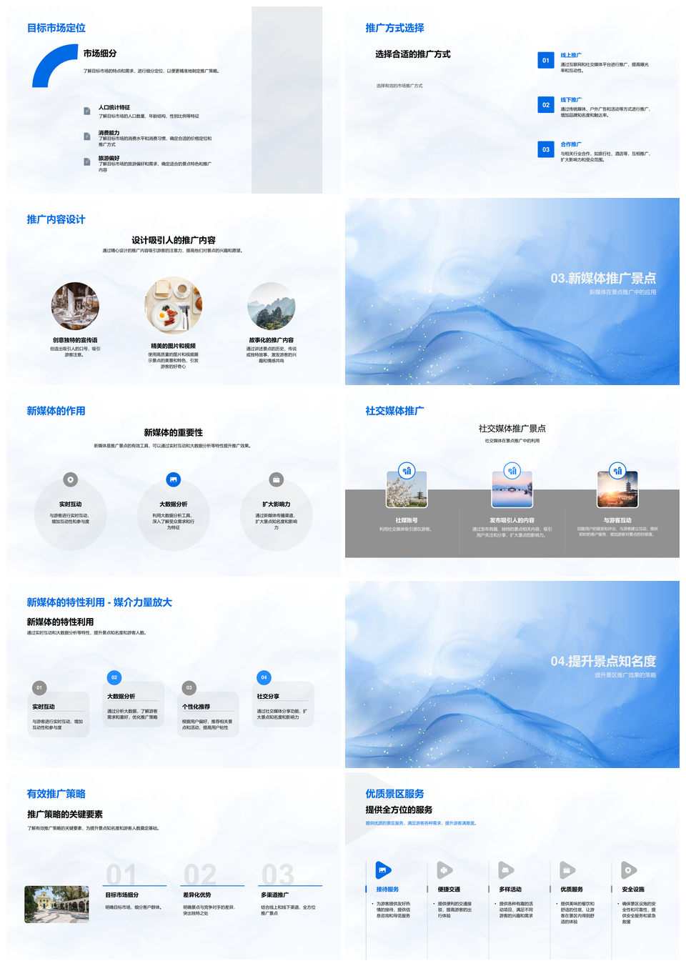 这是一张景点推广新媒体策略定位设计与游客增长培训PPT模板,包含景点推广、新媒体策略、定位设计、游客增长、培训等主题内容,也可用作景点推广新媒体策略定位设计、景点推广新媒体策略定位、景点推广新媒体策略、景点推广策略定位设计、推广新媒体策略定位设计、新媒体策略定位设计与游客、策略定位设计与游客增长、设计与游客增长培训、景点推广策略定位、新媒体策略定位设计、推广策略定位设计、设计与游客增长、景点推广策略、新媒体策略定位、游客增长培训等PPT场景使用。 风云办公提供的景点推广新媒体策略定位设计与游客增长培训PPT模板,下载格式为pptx,一共23页,作品中文字及图均可以修改和编辑,图片更改请在作品中右键图片并更换,文字修改请直接点击文字进行修改。