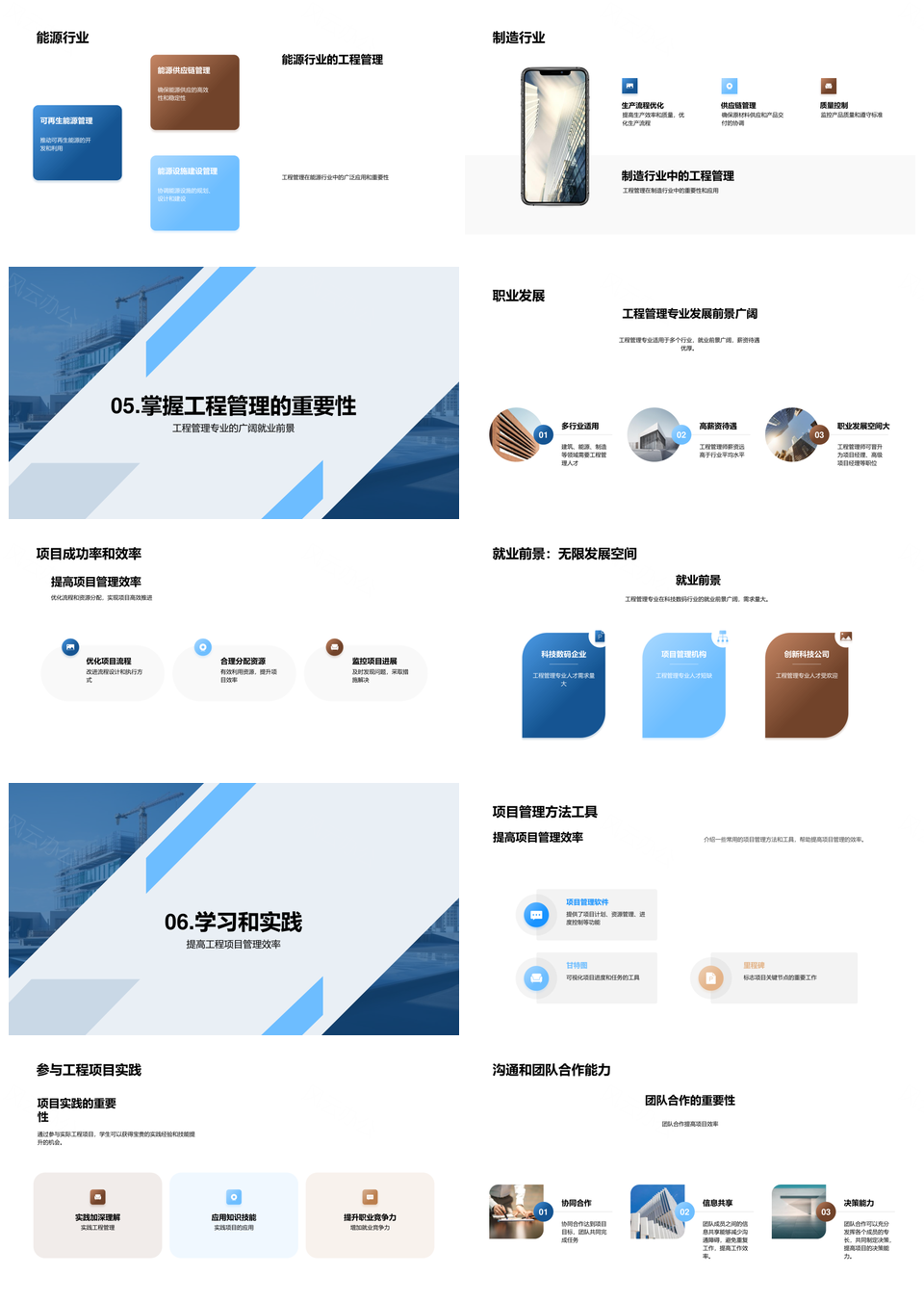 工程项目管理实践团队作用方法与计划蓝图PPT模板