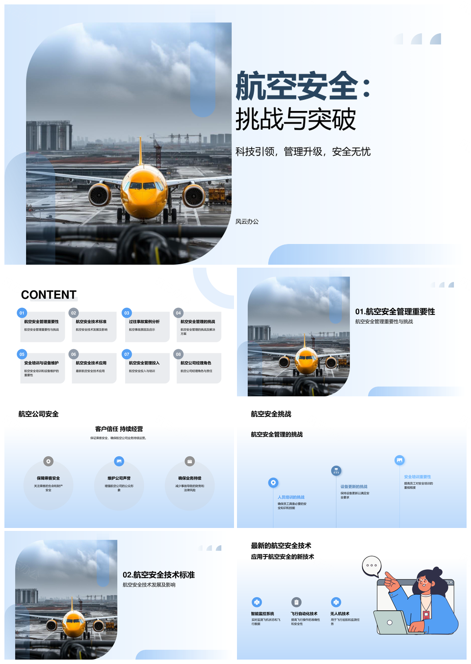 风云办公提供的航空公司安全技术挑战与解决方案PPT模板,下载格式为pptx,一共28页,作品中文字及图均可以修改和编辑,图片更改请在作品中右键图片并更换,文字修改请直接点击文字进行修改。