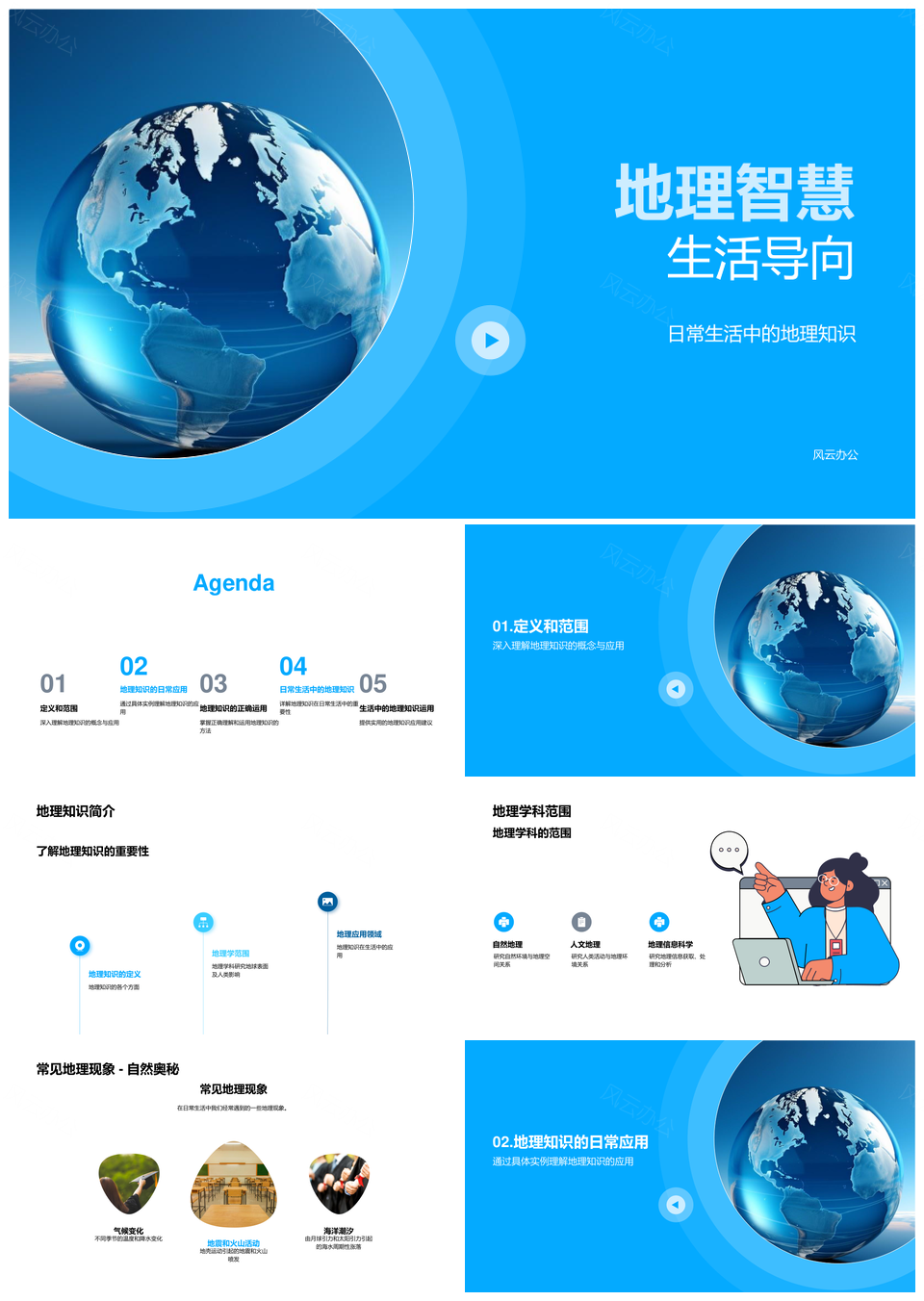 风云办公提供的地理智慧赋能生活场景应用PPT模板,下载格式为pptx,一共23页,作品中文字及图均可以修改和编辑,图片更改请在作品中右键图片并更换,文字修改请直接点击文字进行修改。