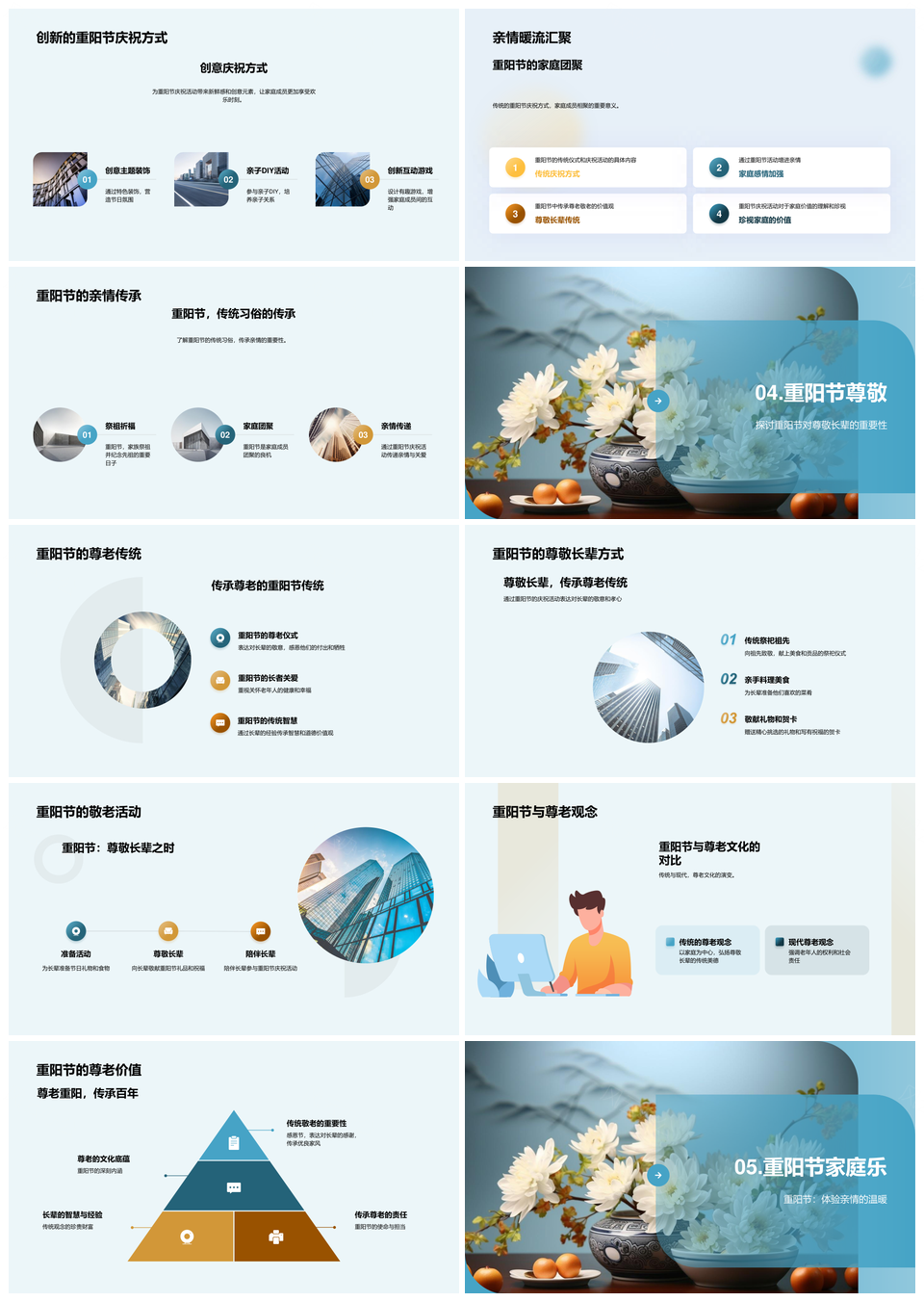 重阳节敬老祭祖亲情团聚传统习俗PPT模板