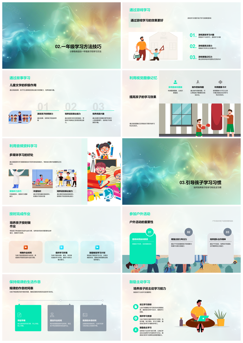 儿童游戏化学习专注记忆家长引导高效教育PPT模板