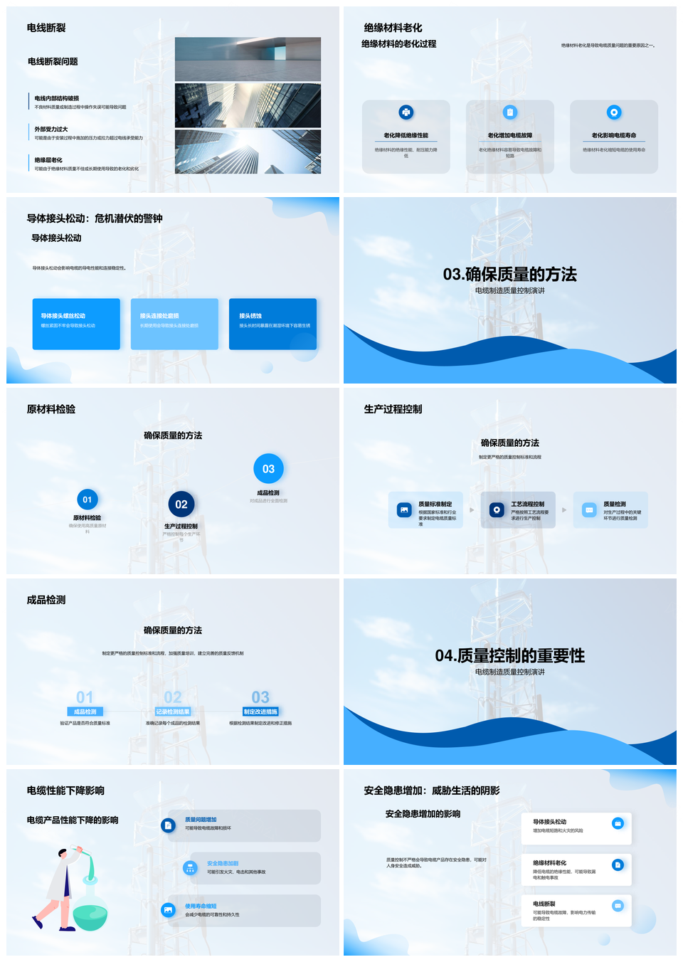 风云办公提供的电缆制造质控与断裂问题工程师分析PPT模板,下载格式为pptx,一共23页,作品中文字及图均可以修改和编辑,图片更改请在作品中右键图片并更换,文字修改请直接点击文字进行修改。