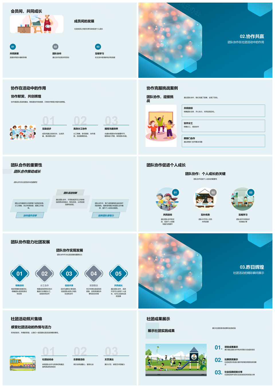 风云办公提供的社团协作发展成长文化活动PPT模板,下载格式为pptx,一共33页,作品中文字及图均可以修改和编辑,图片更改请在作品中右键图片并更换,文字修改请直接点击文字进行修改。
