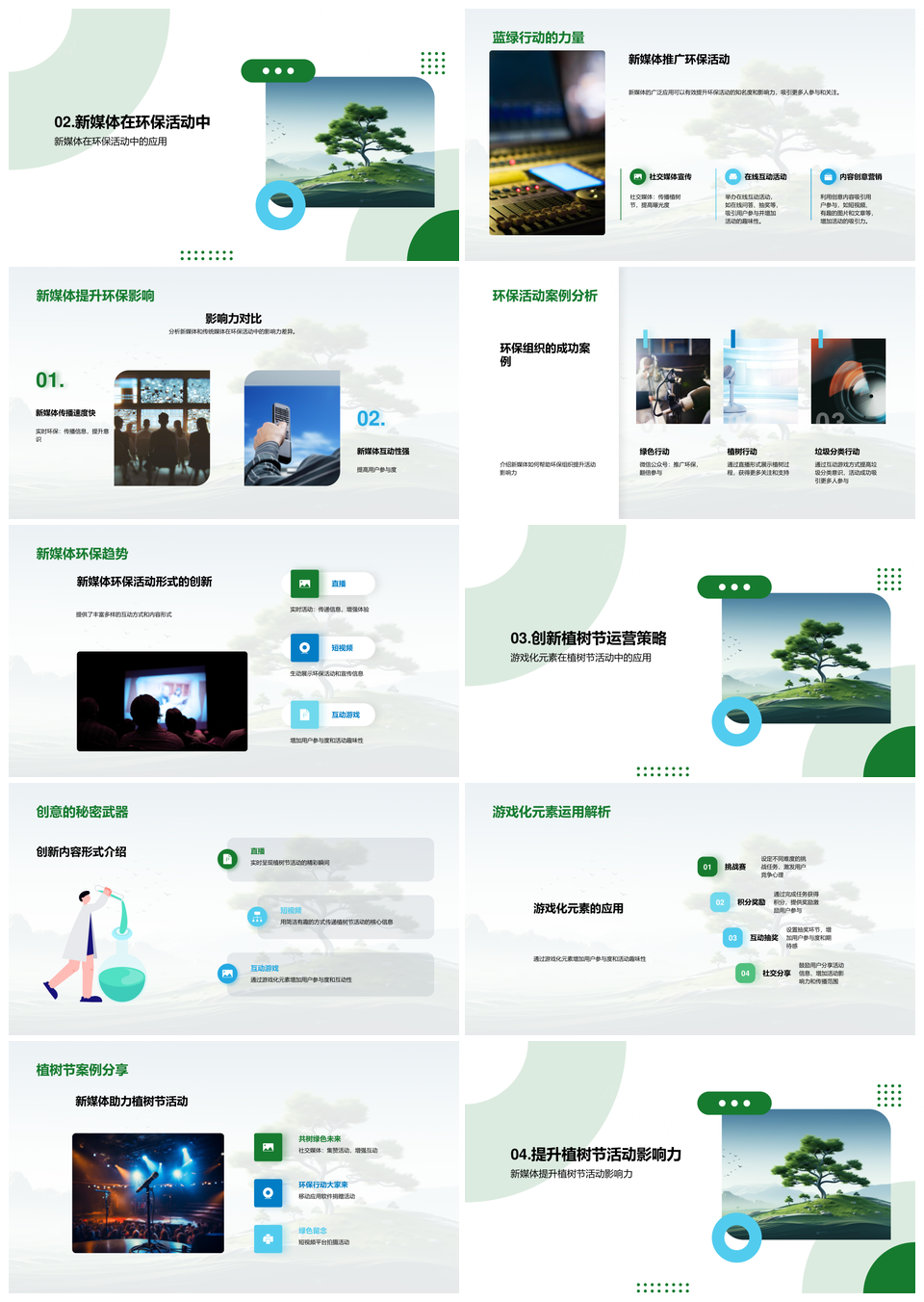 这是一张绿色革新新媒体植树节提升环保参与度PPT模板,包含绿色、革新、新媒体、植树节、提升、环保、参与度等主题内容,也可用作植树节提升环保参与度、新媒体提升环保参与度、绿色革新新媒体、绿色革新植树节、革新新媒体植树节、植树节提升环保、提升环保参与度、绿色革新提升环保、新媒体植树节提升、环保参与度提升、绿色革新、新媒体植树节、植树节环保、环保参与度、提升参与度等PPT场景使用。