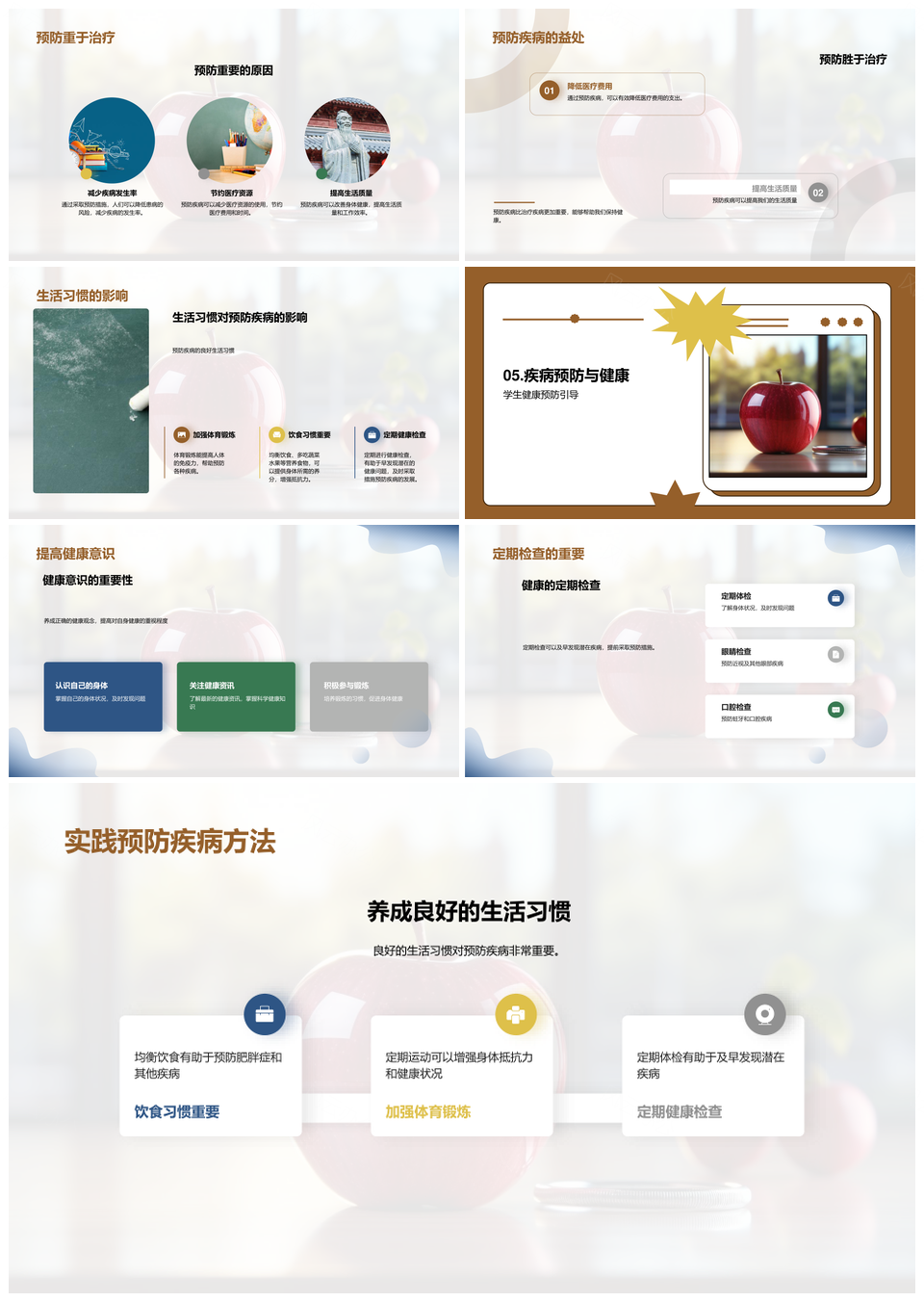 疾病预防教育生活习惯运动遗传环境苹果体检PPT模板