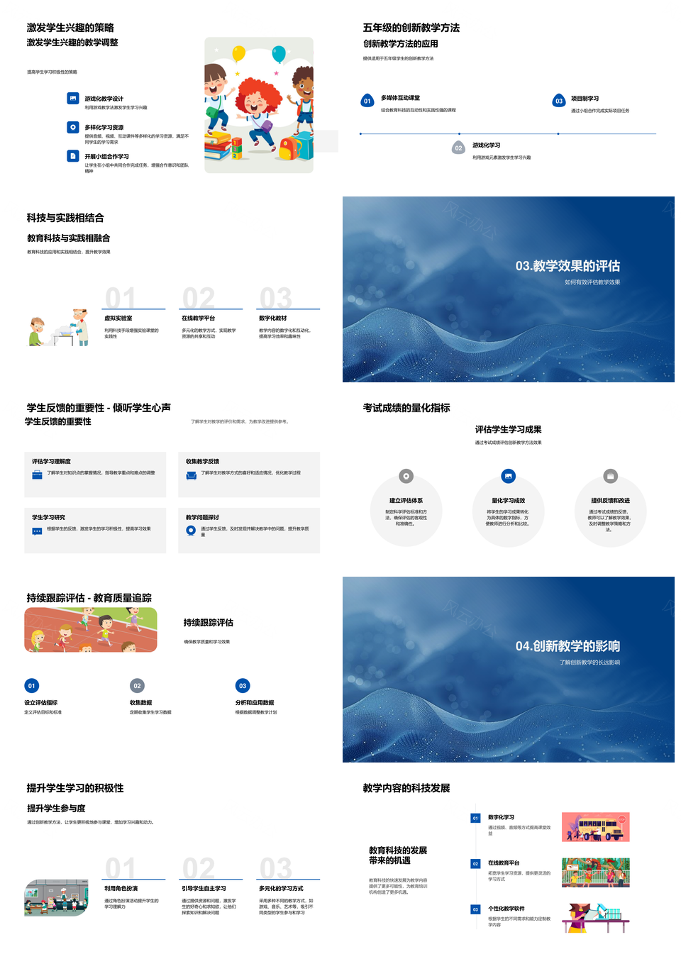 风云办公提供的五年级创新教学科技互动实践效果评估PPT模板,下载格式为pptx,一共23页,作品中文字及图均可以修改和编辑,图片更改请在作品中右键图片并更换,文字修改请直接点击文字进行修改。