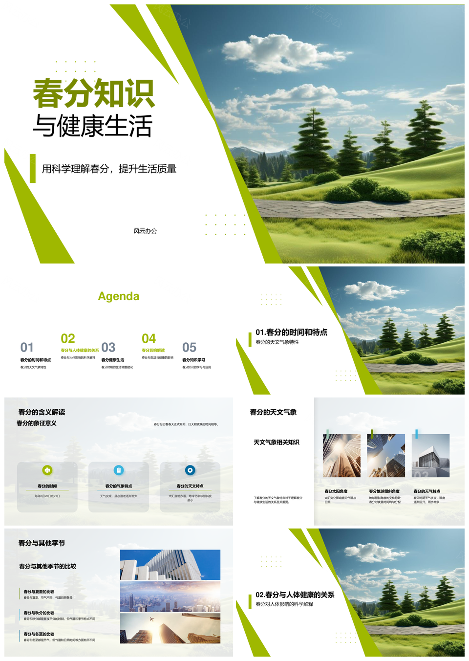 风云办公提供的春分天象健康代谢免疫防病饮食作息PPT模板,下载格式为pptx,一共23页,作品中文字及图均可以修改和编辑,图片更改请在作品中右键图片并更换,文字修改请直接点击文字进行修改。