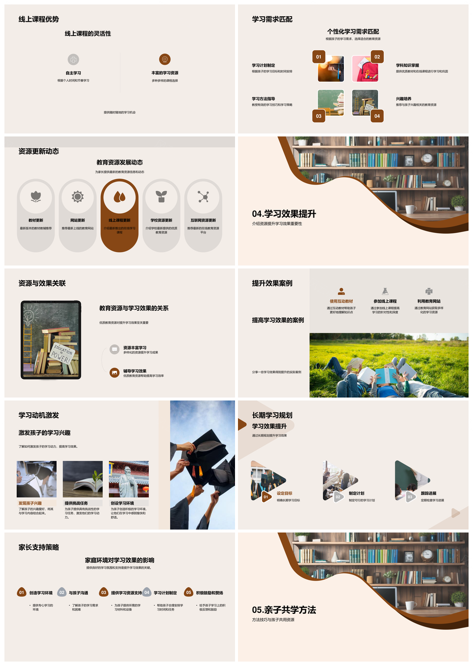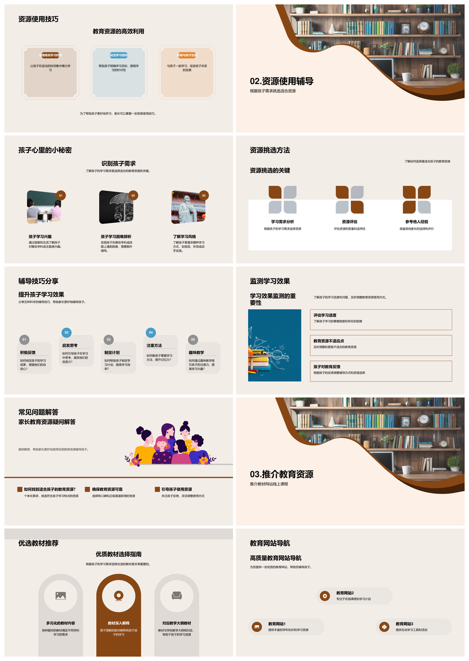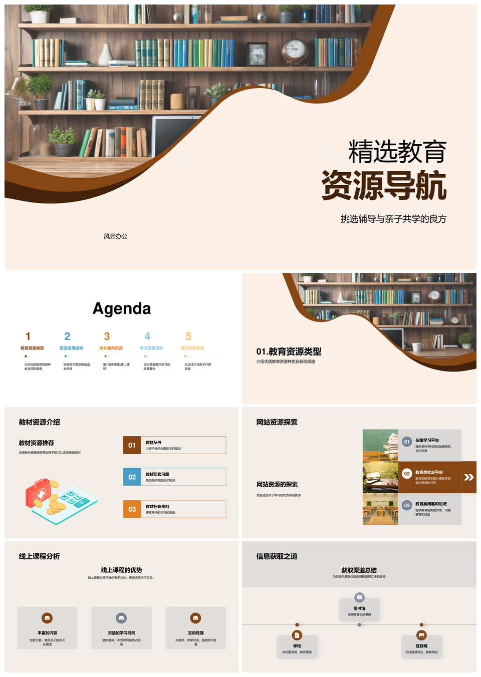 精选教育资源亲子共学辅导教材网课导航PPT模板推荐