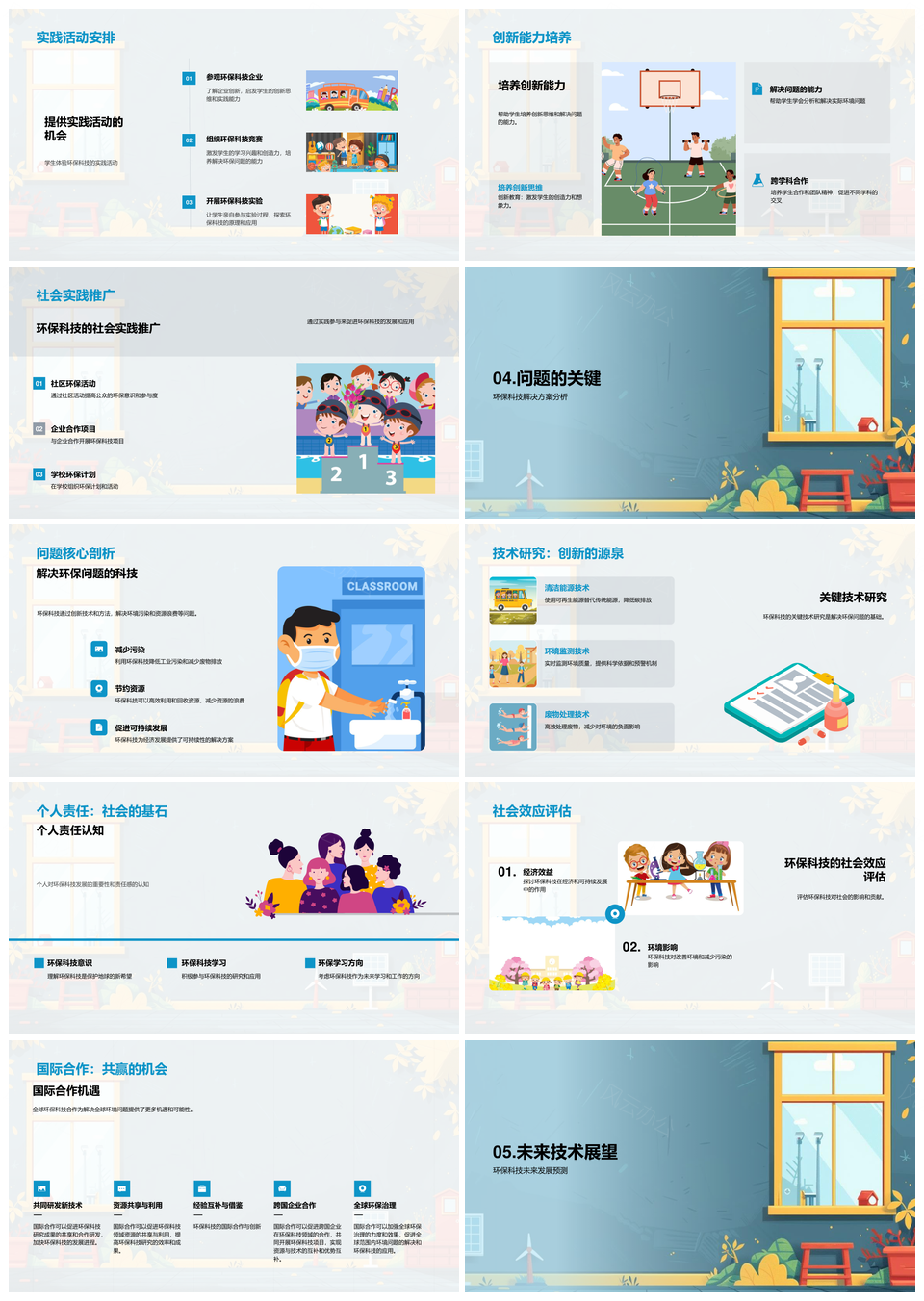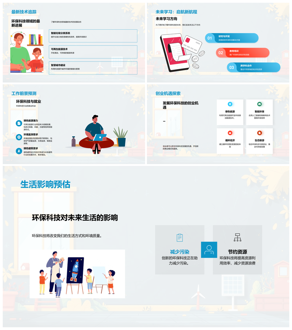 环保科技解决污染节约资源教育研究应用PPT模板推荐