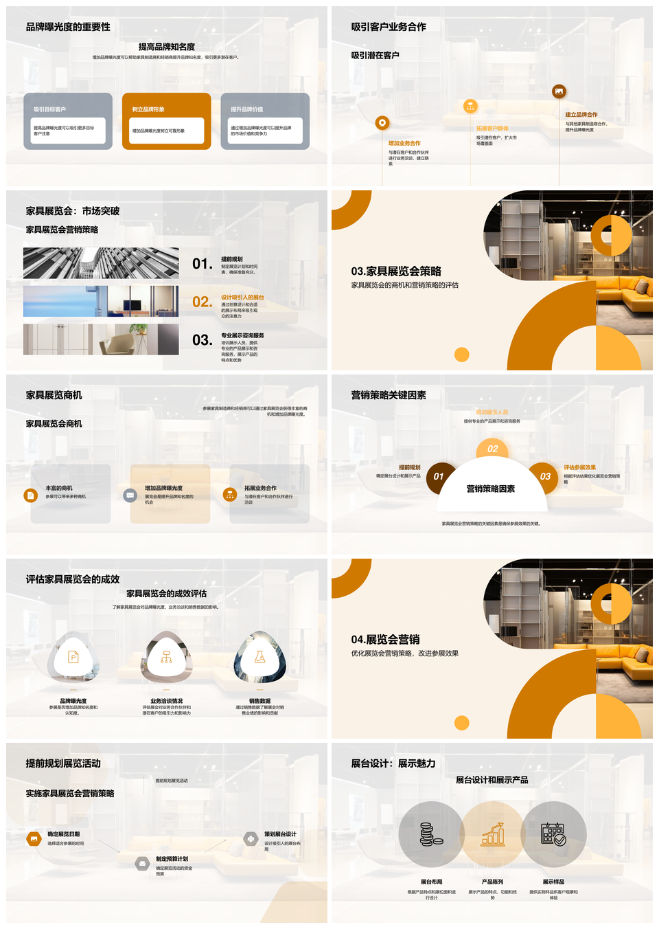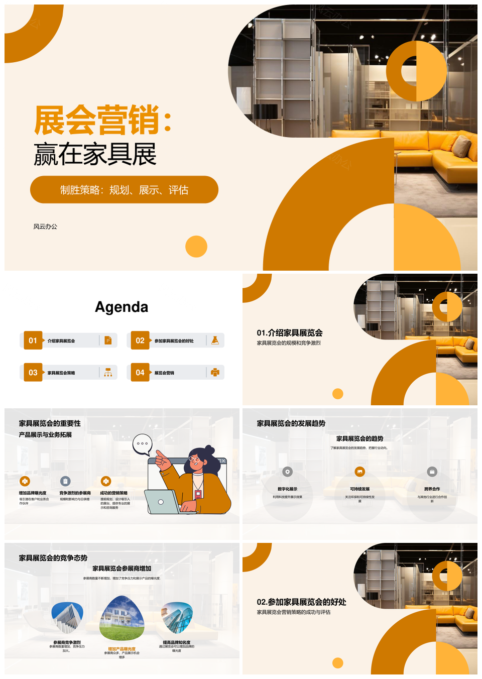 风云办公提供的家具展览会营销策略助厂商拓客增曝光PPT模板,下载格式为pptx,一共19页,作品中文字及图均可以修改和编辑,图片更改请在作品中右键图片并更换,文字修改请直接点击文字进行修改。