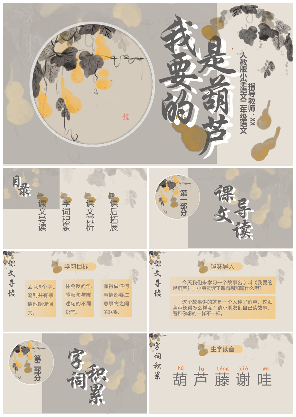 人教版小学语文二年级语文我要的是葫芦PPT模板推荐