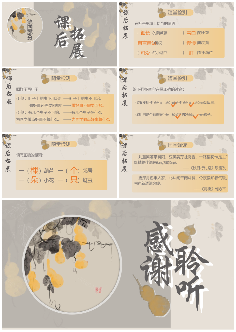 这是一张人教版小学语文二年级语文我要的是葫芦PPT模板,包含人教版、小学语文、二年级、语文、我要的是葫芦等主题内容,也可用作人教版、小学语文、二年级、语文、我要的是葫芦 人教版小学语文二年级语文、人教版小学语文二年级、小学语文二年级语文、二年级语文我要的是葫芦、人教版小学语文、小学语文二年级、二年级语文、语文我要的是葫芦、小学语文我要的是葫芦、我要的是葫芦等PPT场景使用。 风云办公提供的人教版小学语文二年级语文我要的是葫芦PPT模板,下载格式为pptx,一共24页,作品中文字及图均可以修改和编辑,图片更改请在作品中右键图片并更换,文字修改请直接点击文字进行修改。