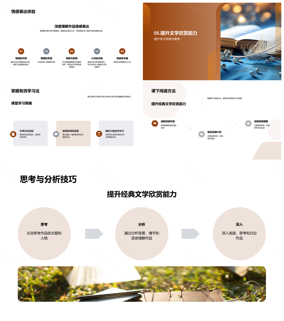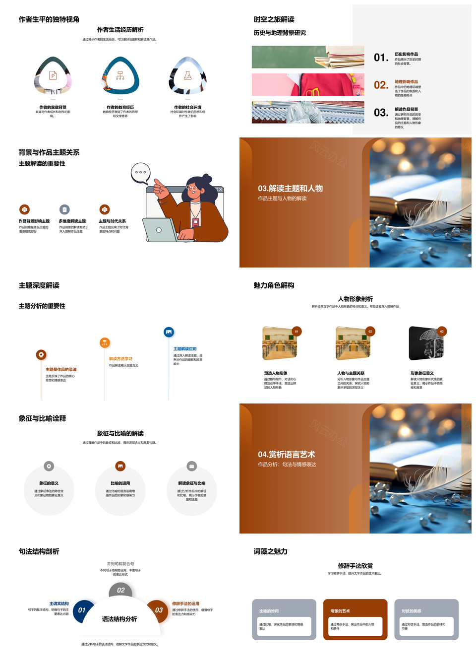 风云办公提供的经典文学名篇赏析启思指南PPT模板,下载格式为pptx,一共23页,作品中文字及图均可以修改和编辑,图片更改请在作品中右键图片并更换,文字修改请直接点击文字进行修改。