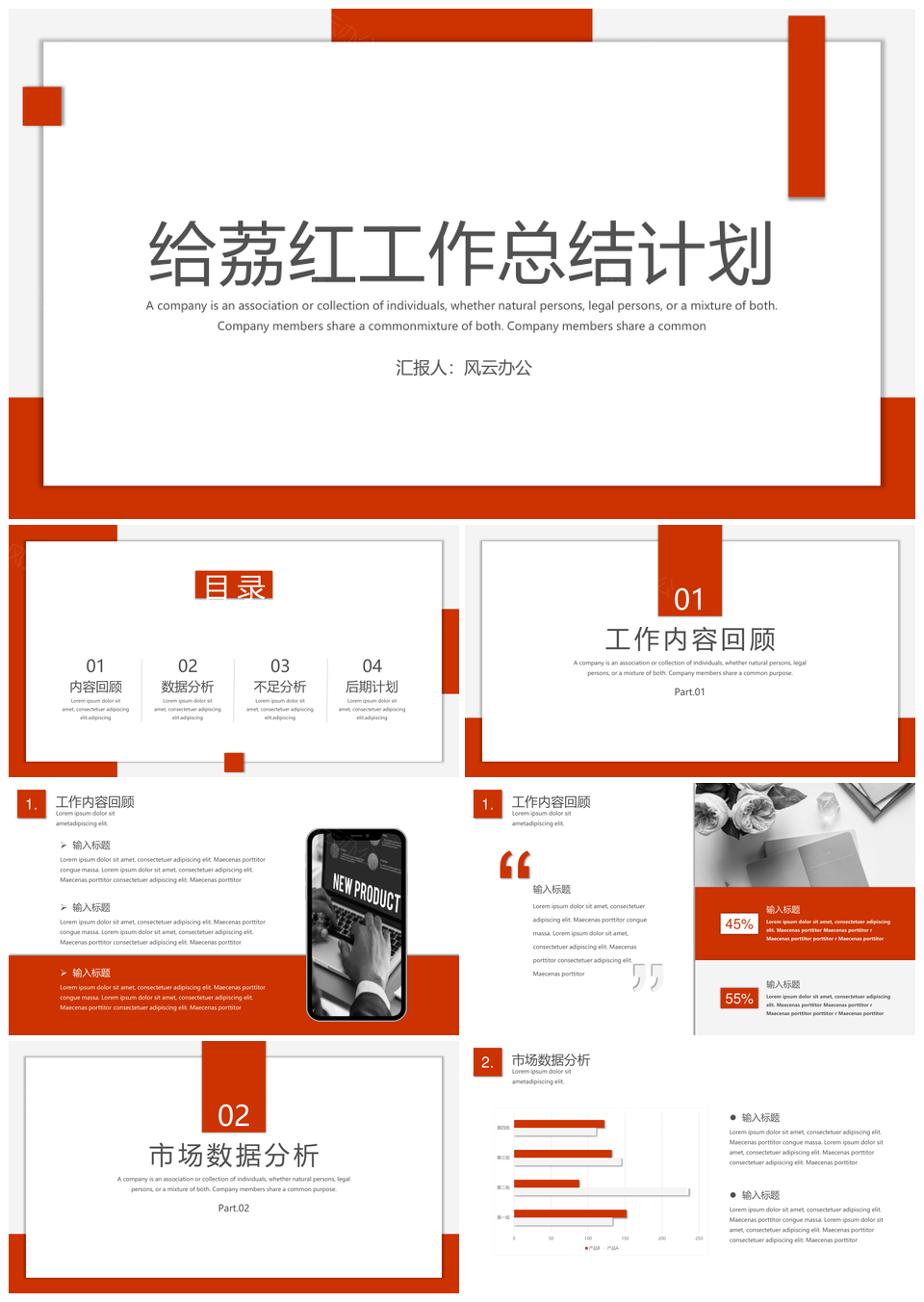 这是一张红色给荔红工作汇报总结计划PPT模板,包含红色、荔红、工作、汇报、总结、计划等主题内容,也可用作红色给荔红工作汇报、给荔红工作汇报总结、工作汇报总结计划、红色给荔红工作、给荔红工作汇报、工作汇报总结、汇报总结计划、红色给荔红、给荔红工作、工作汇报、汇报总结、总结计划等PPT场景使用。 风云办公提供的红色给荔红工作汇报总结计划PPT模板,下载格式为pptx,一共15页,作品中文字及图均可以修改和编辑,图片更改请在作品中右键图片并更换,文字修改请直接点击文字进行修改。