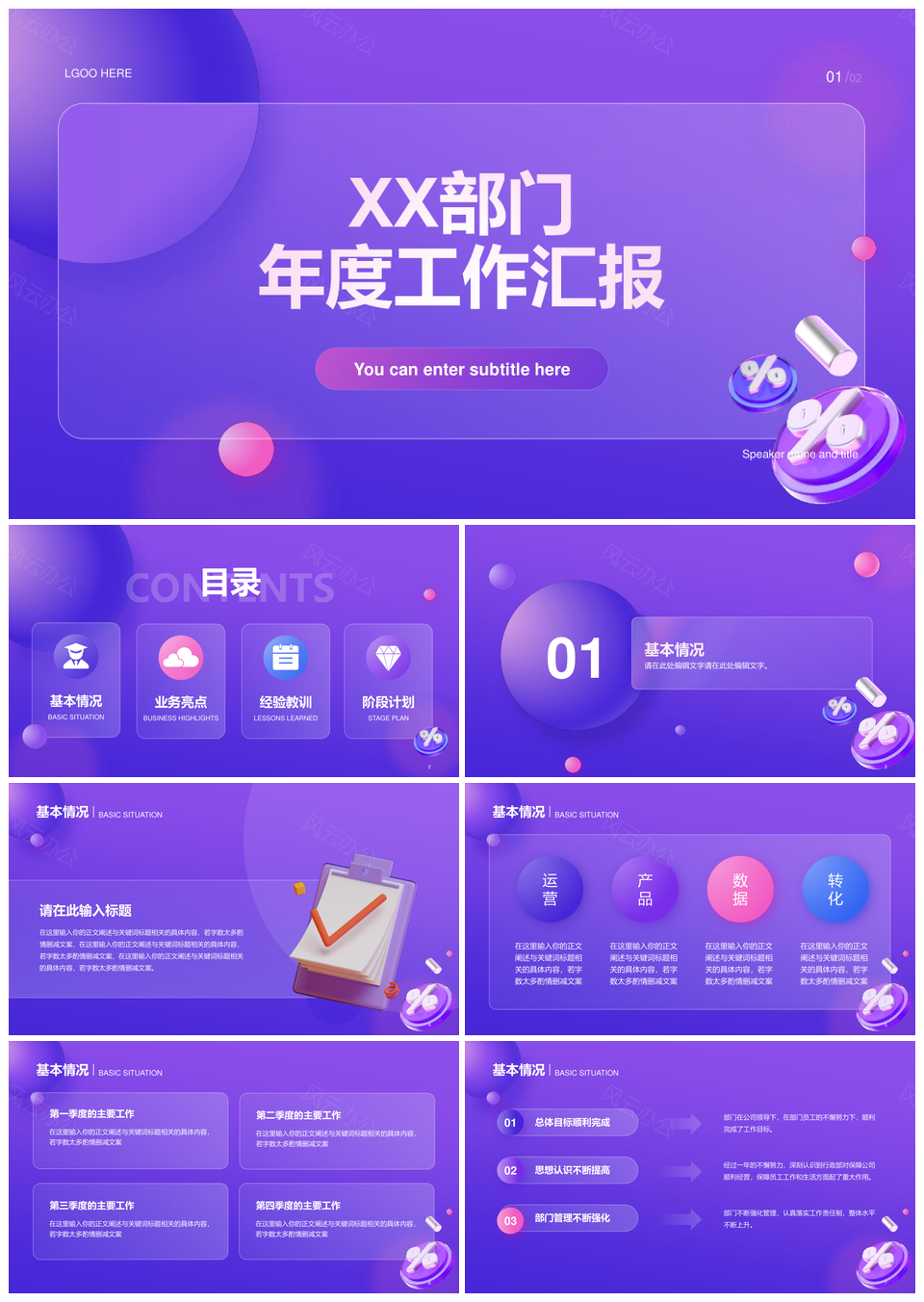 风云办公提供的红紫3D创意电商总结计划策划PPT模板,下载格式为pptx,一共23页,作品中文字及图均可以修改和编辑,图片更改请在作品中右键图片并更换,文字修改请直接点击文字进行修改。