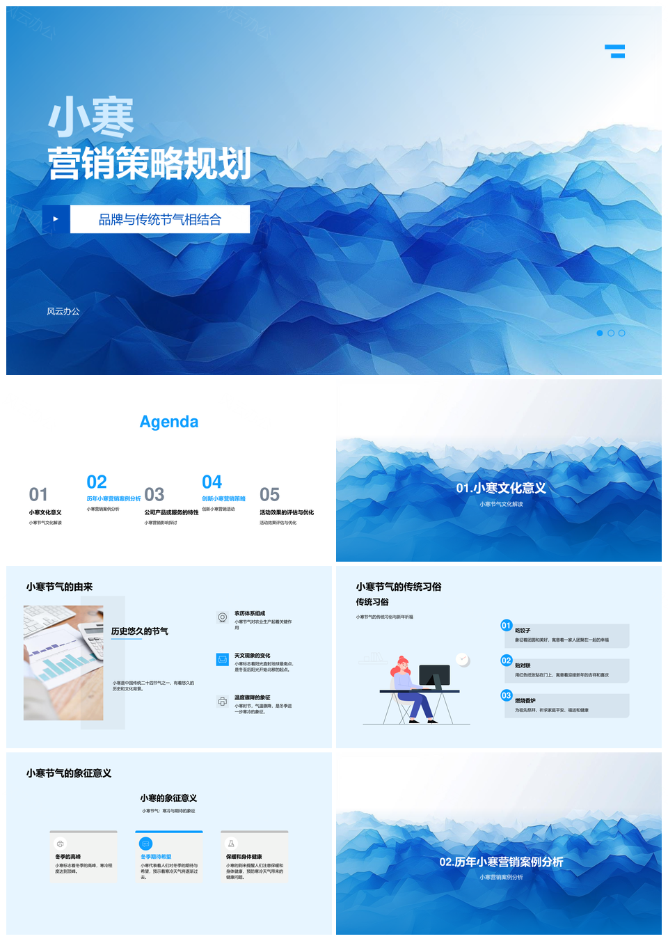 风云办公提供的品牌小寒节气营销策略规划案例分析PPT模板,下载格式为pptx,一共23页,作品中文字及图均可以修改和编辑,图片更改请在作品中右键图片并更换,文字修改请直接点击文字进行修改。