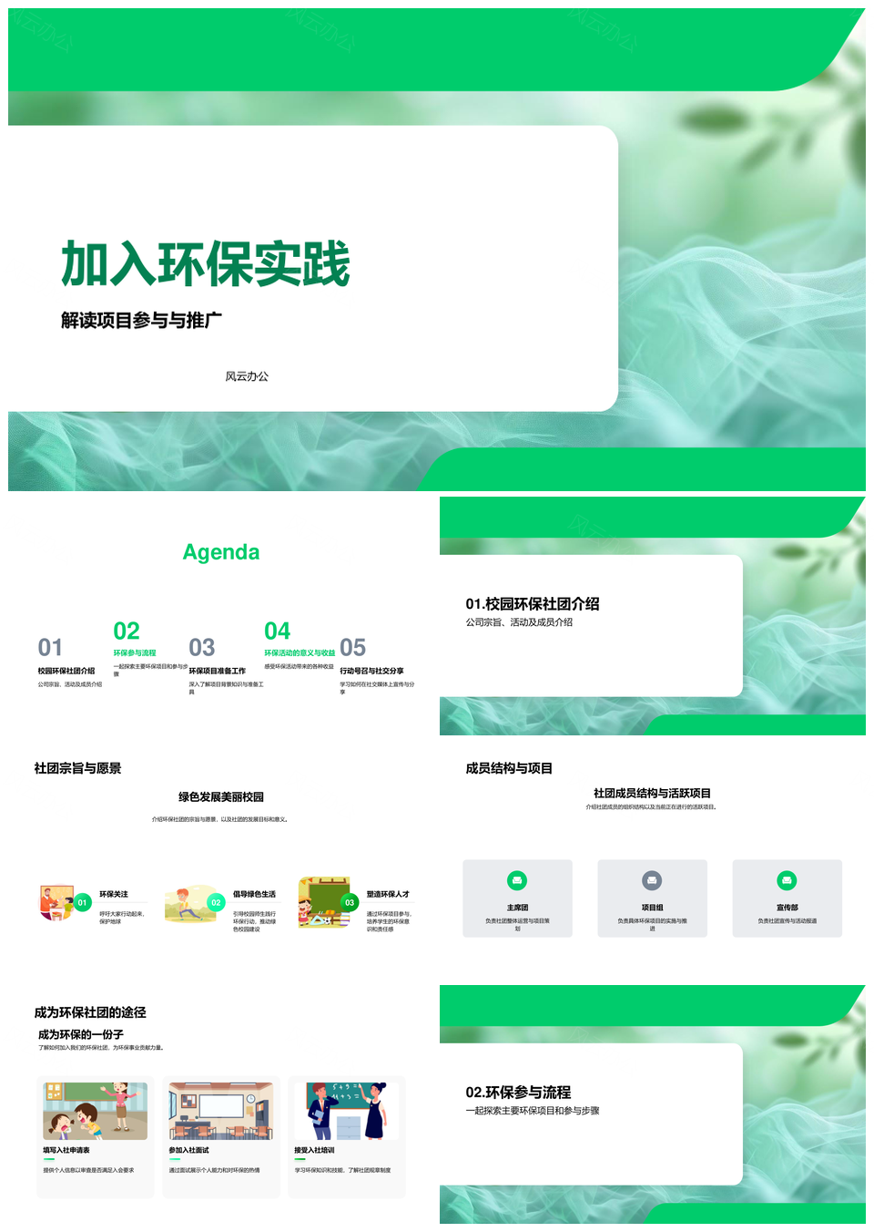 风云办公提供的环保社团项目参与教育实践推广活动PPT模板,下载格式为pptx,一共23页,作品中文字及图均可以修改和编辑,图片更改请在作品中右键图片并更换,文字修改请直接点击文字进行修改。