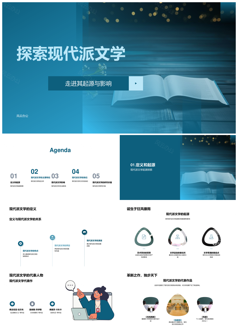 风云办公提供的现代派文学源起作家创新与社会影响PPT模板,下载格式为pptx,一共28页,作品中文字及图均可以修改和编辑,图片更改请在作品中右键图片并更换,文字修改请直接点击文字进行修改。