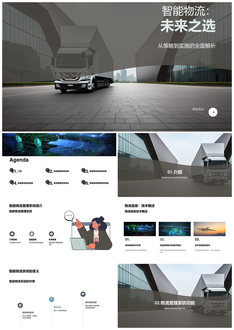 风云办公提供的智能物流系统引领城市配送管理未来PPT模板,下载格式为pptx,一共29页,作品中文字及图均可以修改和编辑,图片更改请在作品中右键图片并更换,文字修改请直接点击文字进行修改。