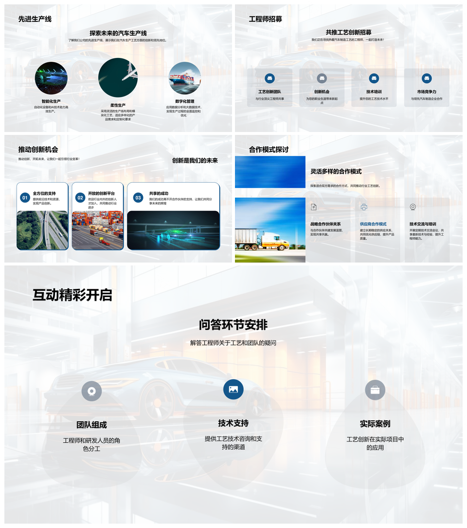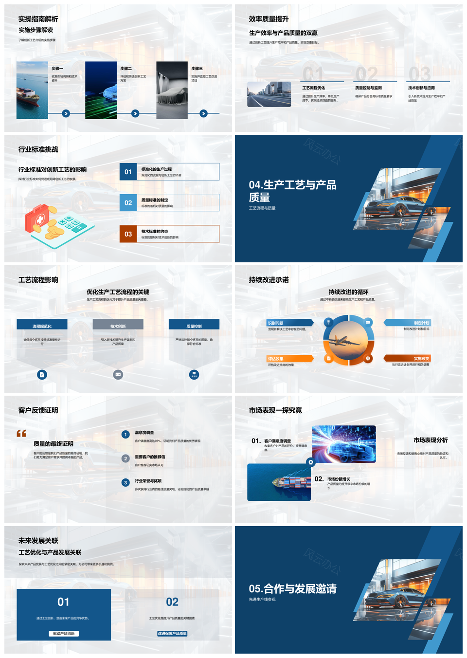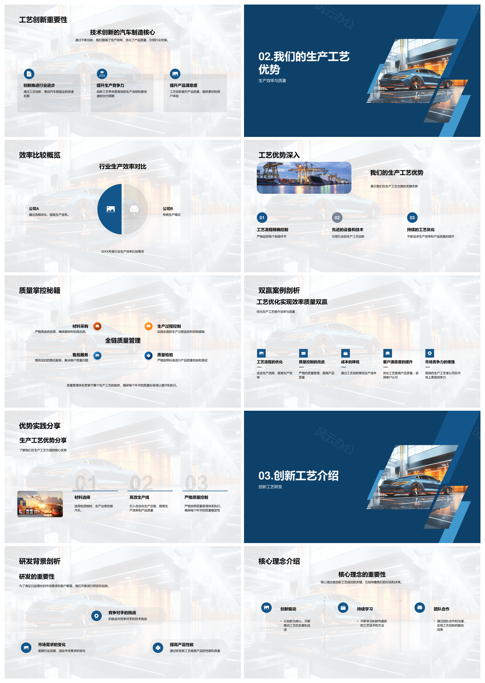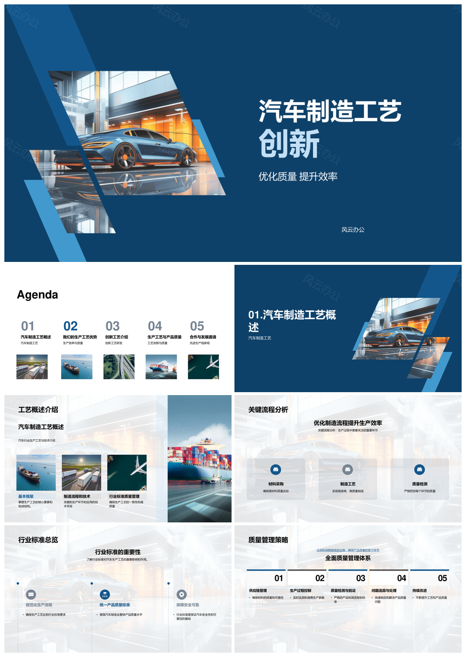 这是一张汽车制造工艺创新优化提升质量效率标准PPT模板,包含汽车、制造、工艺、创新、优化、提升、质量、效率、标准等主题内容,也可用作汽车制造工艺创新优化、汽车制造工艺创新、汽车制造工艺、工艺创新优化提升、工艺创新优化、工艺创新、创新优化提升质量、创新优化提升、创新优化、优化提升质量效率、优化提升质量、优化提升、提升质量效率标准、提升质量效率、提升质量等PPT场景使用。 风云办公提供的汽车制造工艺创新优化提升质量效率标准PPT模板,下载格式为pptx,一共33页,作品中文字及图均可以修改和编辑,图片更改请在作品中右键图片并更换,文字修改请直接点击文字进行修改。