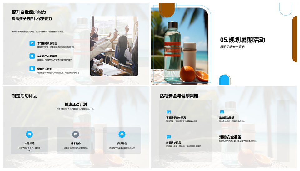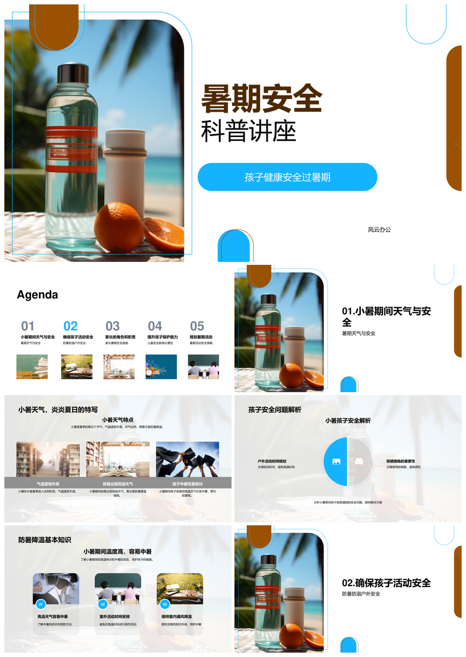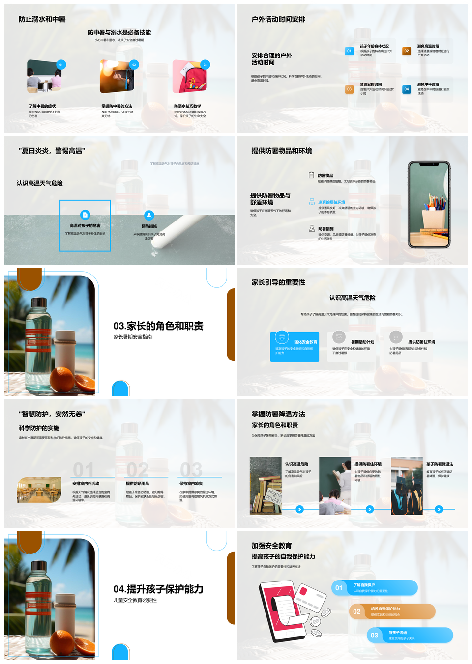 这是一张暑期孩子安全科普防暑防溺水家长急救指南PPT模板,包含暑期、孩子、安全、科普、防暑、防溺水、家长、急救、指南等主题内容,也可用作暑期孩子安全科普、安全科普防暑防溺水、防暑防溺水家长急救、防溺水家长急救指南、暑期安全科普防暑、孩子安全防暑防溺水、科普防暑防溺水急救、防暑家长急救指南、暑期孩子防暑防溺、安全防暑防溺水指南、家长急救指南暑期、暑期孩子安全防溺、安全科普家长急救、防暑防溺水急救指南、科普防溺水家长急救等PPT场景使用。 风云办公提供的暑期孩子安全科普防暑防溺水家长急救指南PPT模板,下载格式为pptx,一共22页,作品中文字及图均可以修改和编辑,图片更改请在作品中右键图片并更换,文字修改请直接点击文字进行修改。