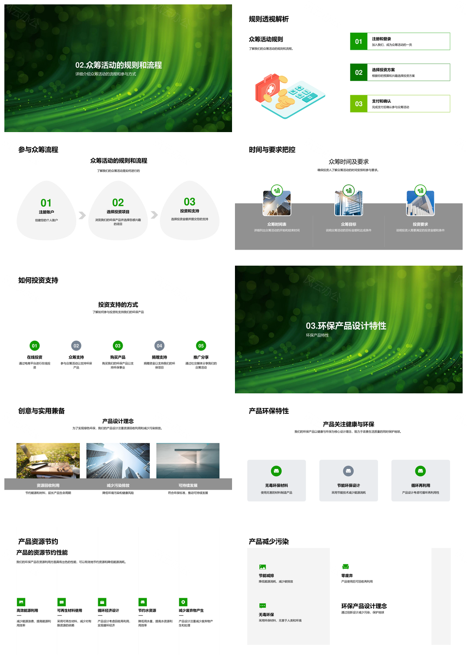 绿色电商众筹环保市场投资趋势资源减污设计PPT模板推荐