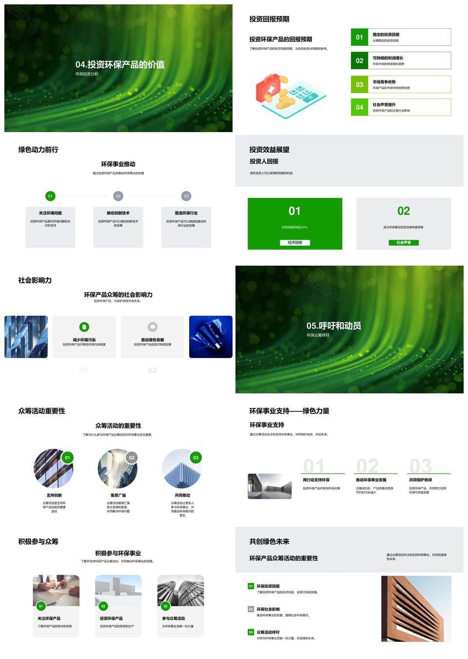 绿色电商众筹环保市场投资趋势资源减污设计PPT模板