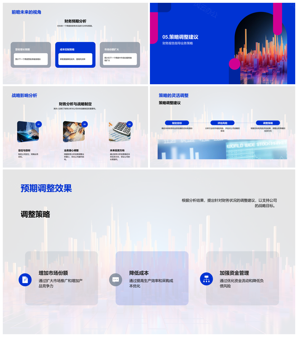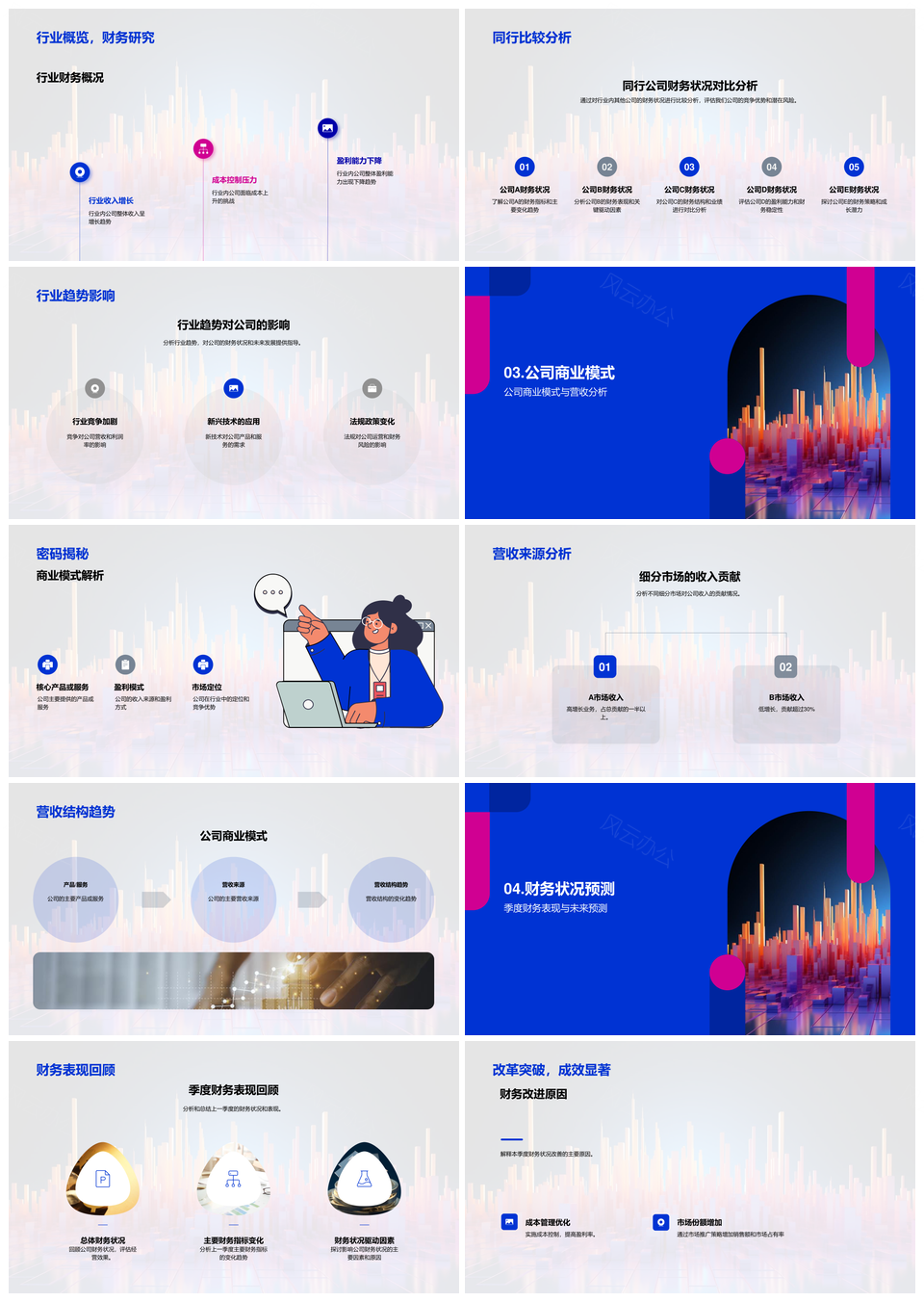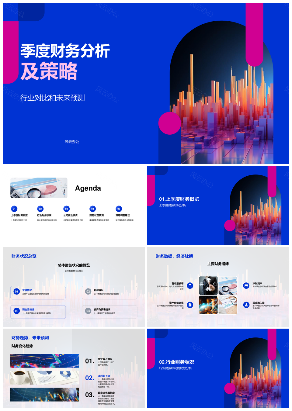 风云办公提供的季度财务分析策略行业趋势对比展望PPT模板,下载格式为pptx,一共23页,作品中文字及图均可以修改和编辑,图片更改请在作品中右键图片并更换,文字修改请直接点击文字进行修改。