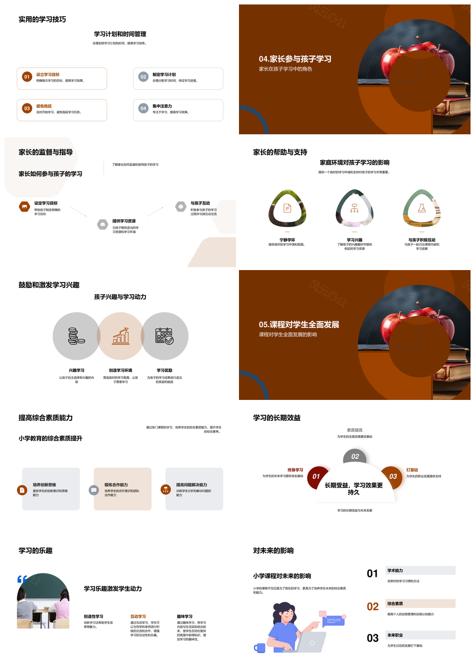 风云办公提供的小学课程高效学习家长参与教育解析PPT模板,下载格式为pptx,一共28页,作品中文字及图均可以修改和编辑,图片更改请在作品中右键图片并更换,文字修改请直接点击文字进行修改。