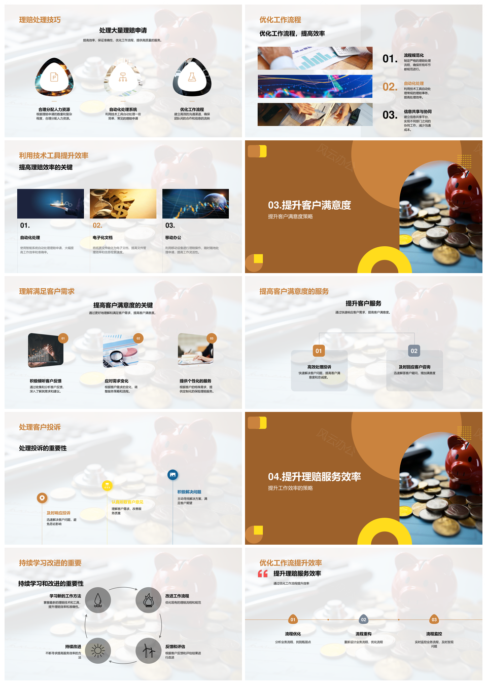 这是一张保险理赔高效服务技术工具提升客户满意度PPT模板,包含保险理赔、高效服务、技术工具、提升、客户满意度等主题内容,也可用作保险理赔高效服务技术工具、保险理赔高效服务、高效服务技术工具提升、技术工具提升客户满意度、保险理赔高效服务技术、高效服务技术工具、保险理赔技术工具、服务技术工具提升、技术工具提升客户、工具提升客户满意度、保险理赔高效、高效服务技术、技术工具提升、服务技术工具、客户满意度等PPT场景使用。 风云办公提供的保险理赔高效服务技术工具提升客户满意度PPT模板,下载格式为pptx,一共23页,作品中文字及图均可以修改和编辑,图片更改请在作品中右键图片并更换,文字修改请直接点击文字进行修改。