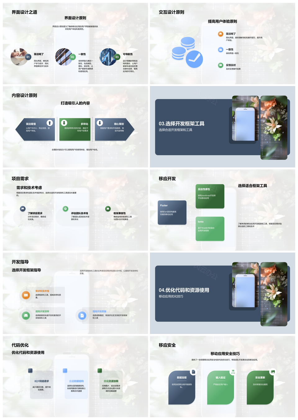 移动应用开发最佳实践流程框架工具界面交互设计PPT模板推荐