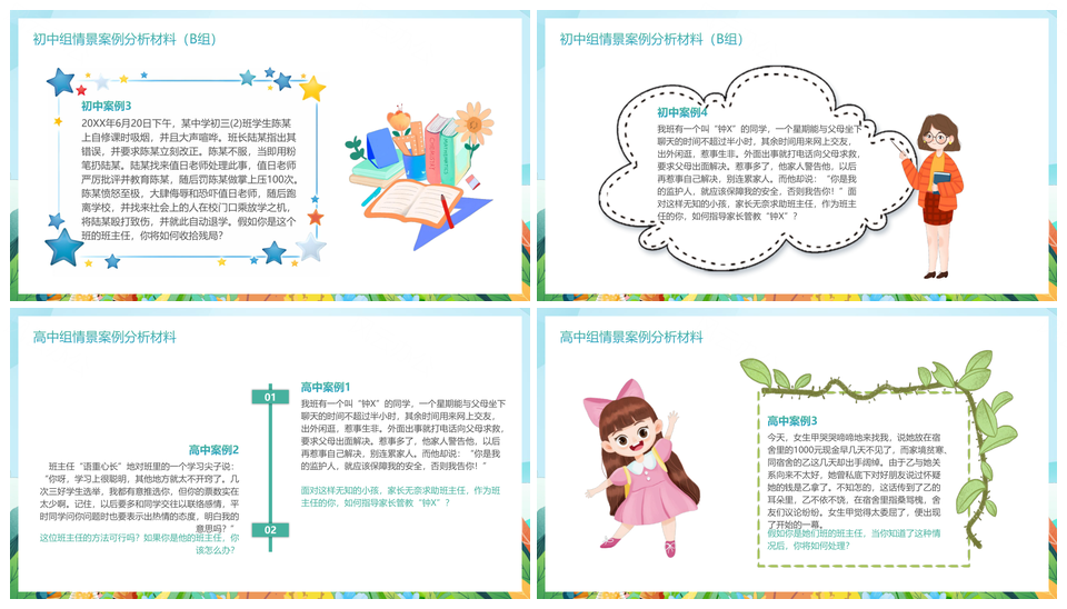 这是一张清新卡通班主任技能大赛案例培训材料PPT模板,包含清新、卡通、班主任、技能、大赛、案例、培训、材料等主题内容,也可用作清新卡通班主任技能大赛、卡通班主任技能大赛案例、班主任技能大赛案例培训材料、清新卡通班主任案例、清新卡通技能大赛案例、卡通班主任案例培训材料、技能大赛案例培训材料、清新卡通班主任技能、清新卡通班主任培训材料、清新技能大赛案例培训、卡通班主任技能大赛材料、班主任技能大赛培训材料、清新卡通班主任、卡通班主任技能、技能大赛案例培训等PPT场景使用。