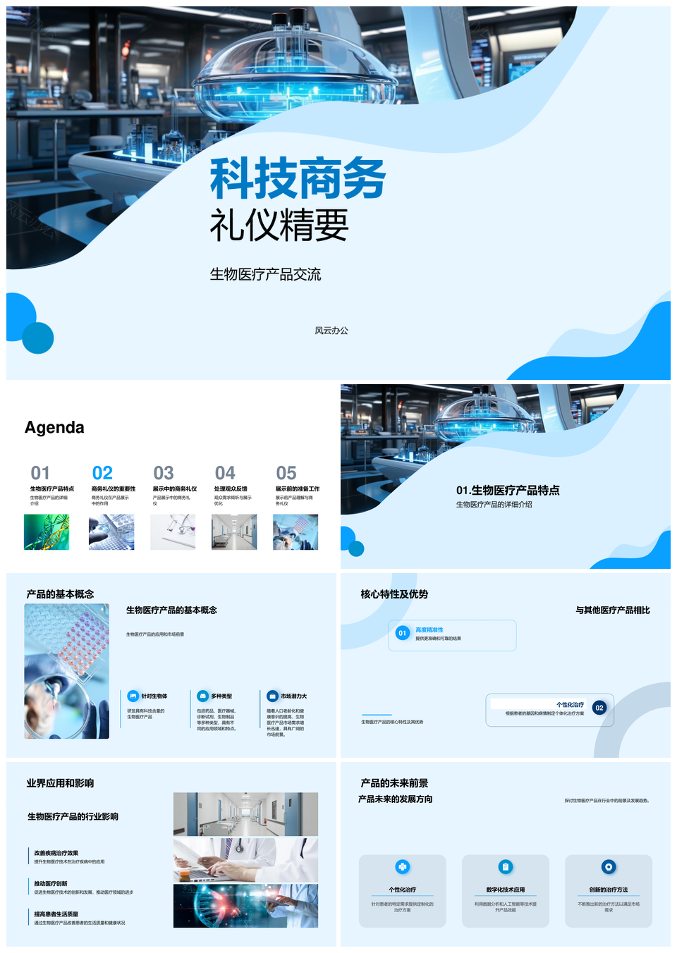 风云办公提供的生物医疗产品科技商务礼仪培训PPT模板,下载格式为pptx,一共28页,作品中文字及图均可以修改和编辑,图片更改请在作品中右键图片并更换,文字修改请直接点击文字进行修改。