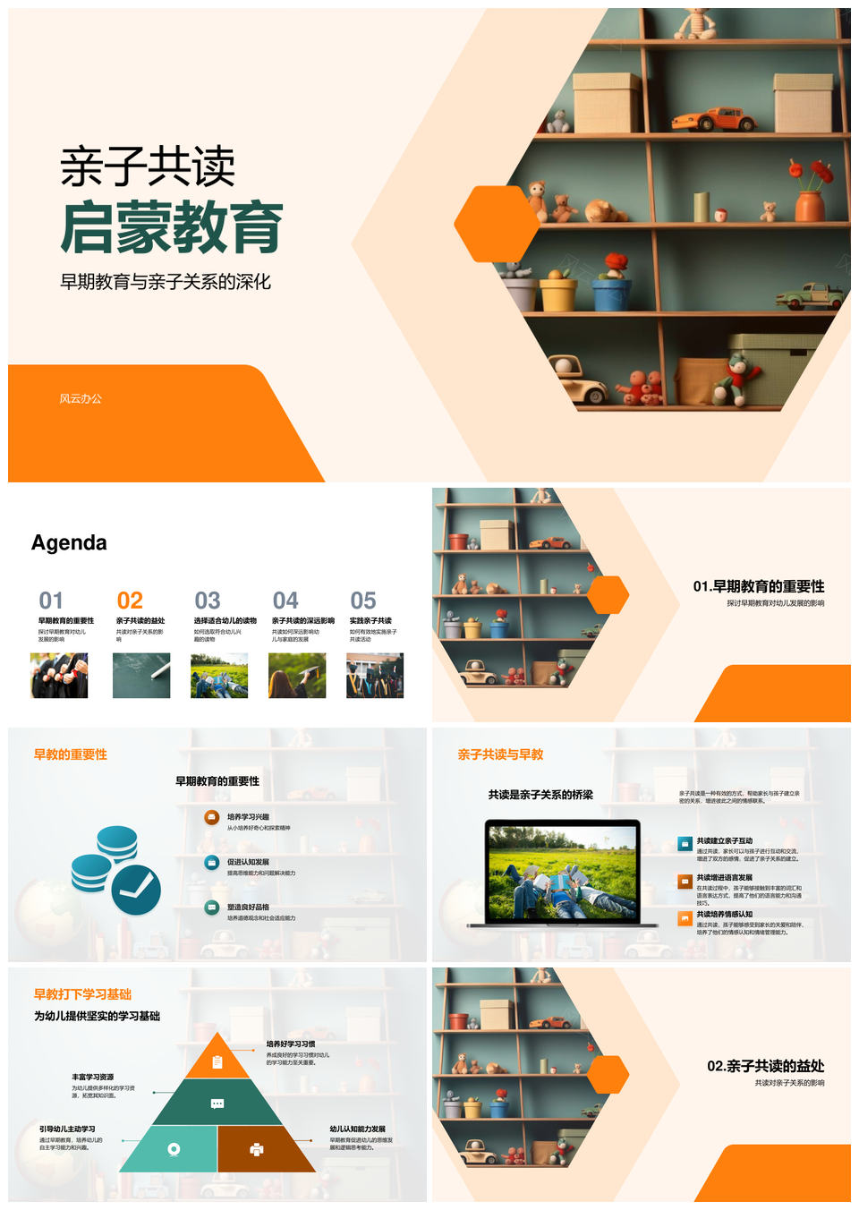 风云办公提供的亲子共读启蒙教育助力幼儿全面发展PPT模板,下载格式为pptx,一共23页,作品中文字及图均可以修改和编辑,图片更改请在作品中右键图片并更换,文字修改请直接点击文字进行修改。