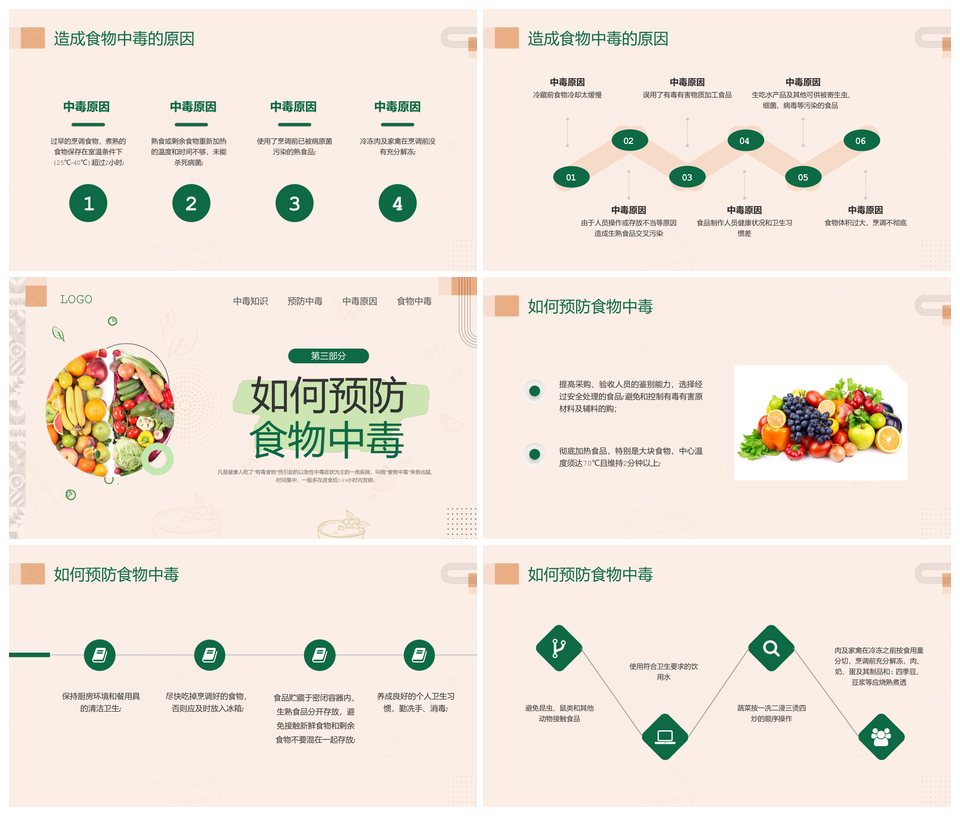 绿色简约幼儿园食品安全防中毒教育动态PPT模板