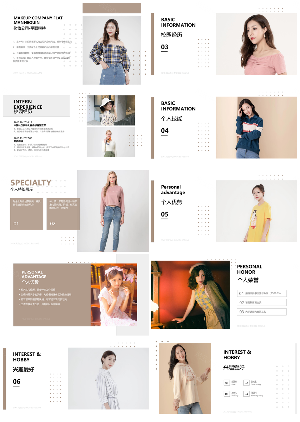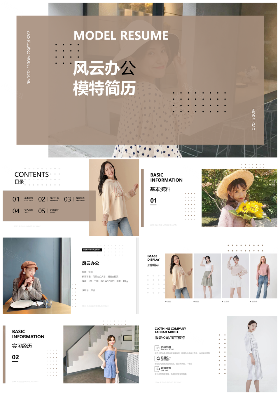 2025简约风格时尚模特简历设计模板PPT展示方案推荐