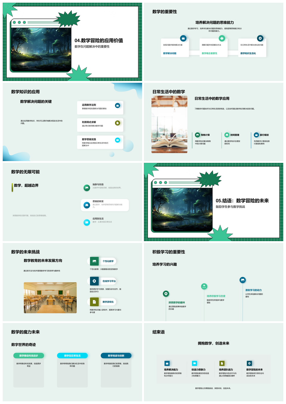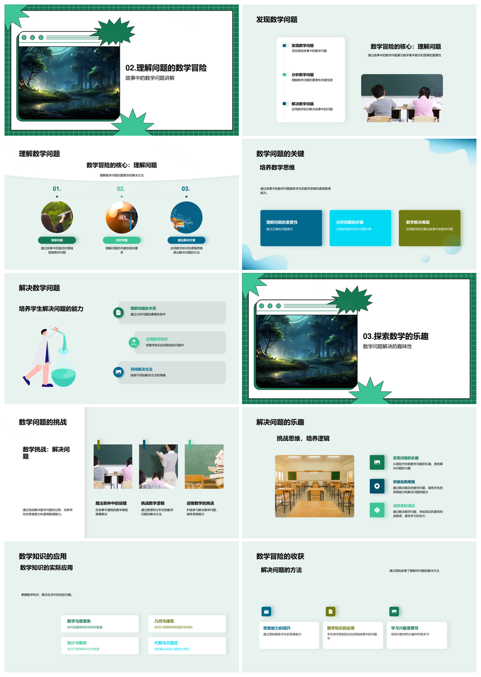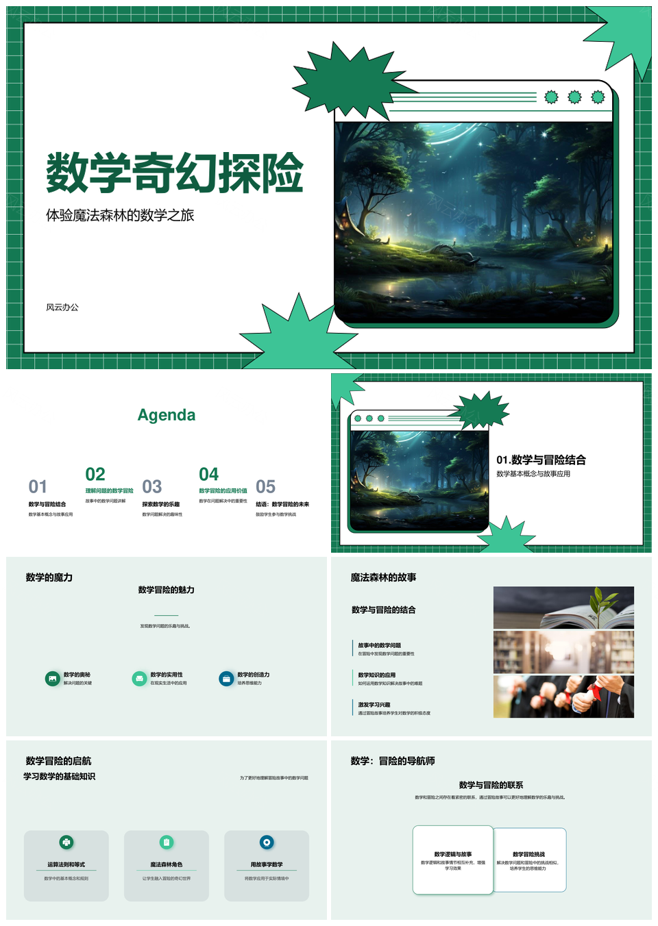 风云办公提供的魔法森林小学数学奇幻探险解题PPT模板,下载格式为pptx,一共28页,作品中文字及图均可以修改和编辑,图片更改请在作品中右键图片并更换,文字修改请直接点击文字进行修改。