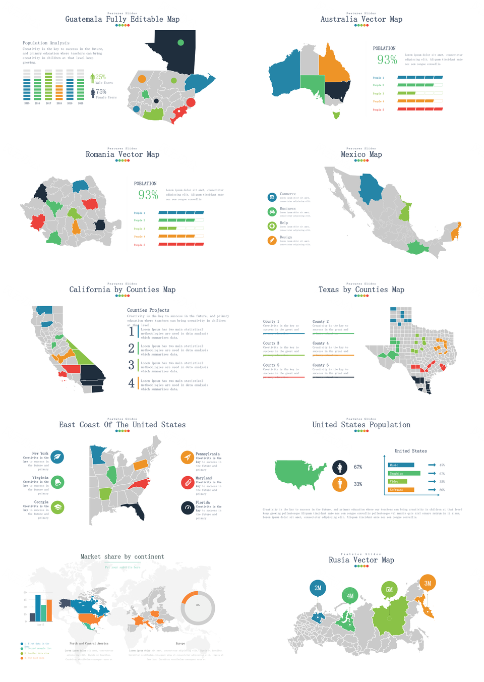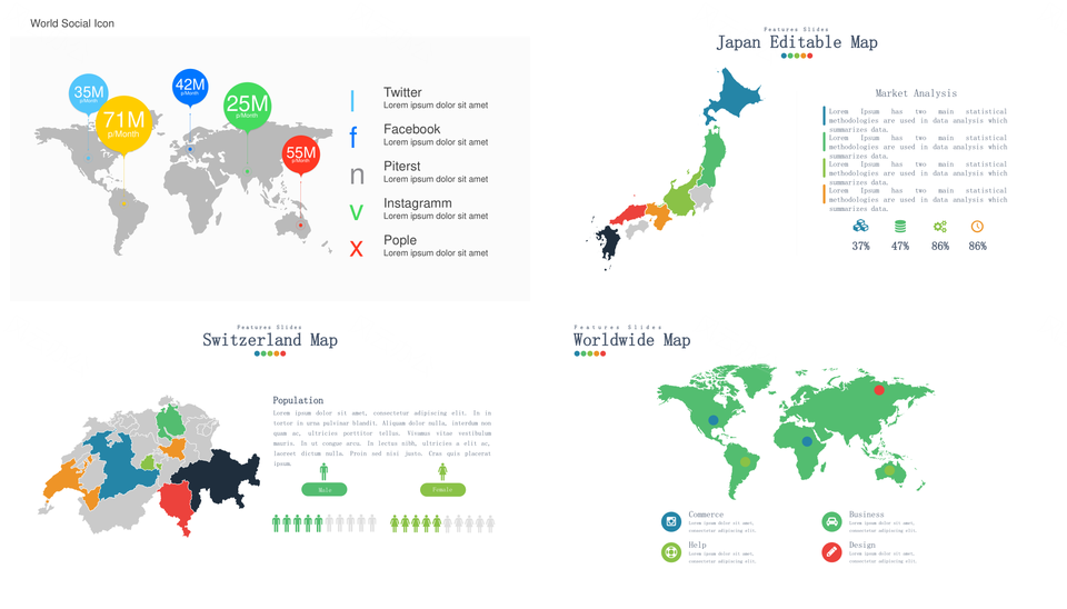这是一张彩色世界地图PPT模板,包含彩色、世界、地图等主题内容,也可用作彩色、世界、地图 彩色世界地图、彩色世界、彩色地图、世界地图等PPT场景使用。 风云办公提供的彩色世界地图PPT模板,下载格式为pptx,一共31页,作品中文字及图均可以修改和编辑,图片更改请在作品中右键图片并更换,文字修改请直接点击文字进行修改。