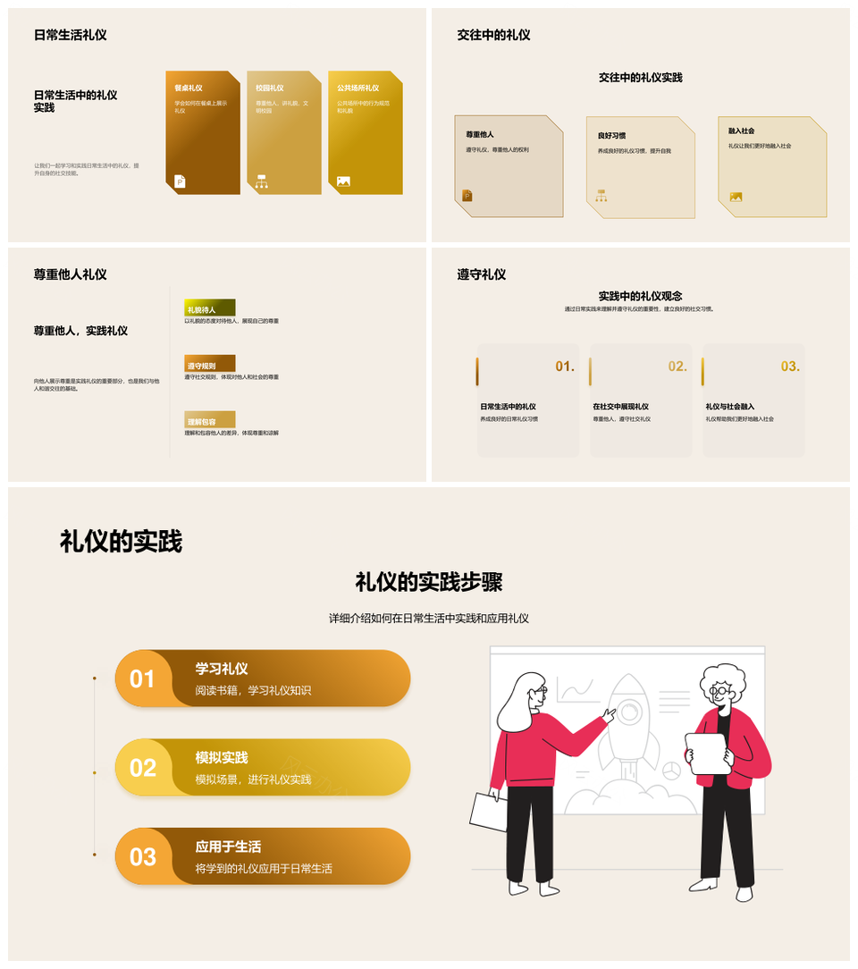 2025中华传统礼仪教育助力新生构建和谐社会PPT模板