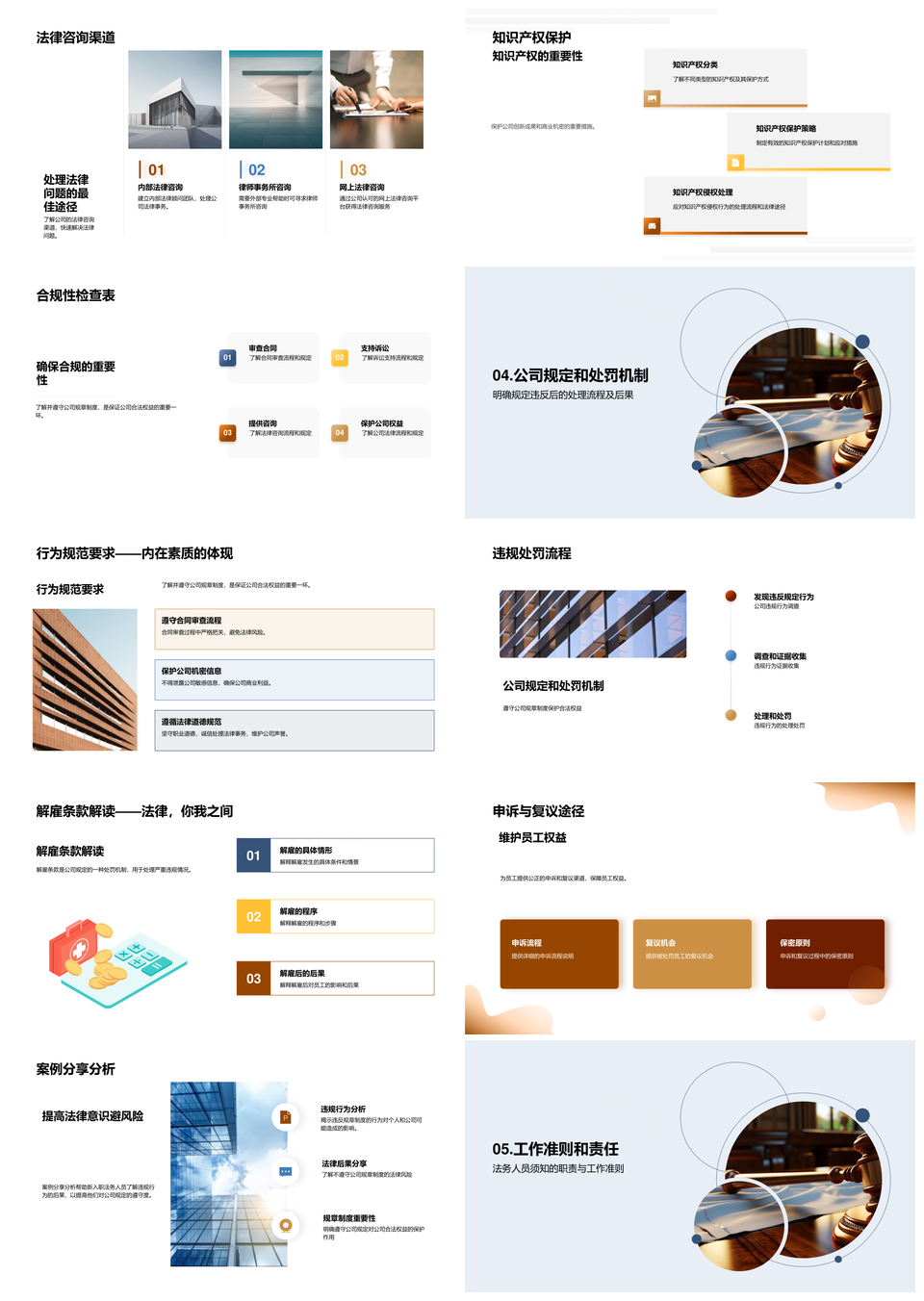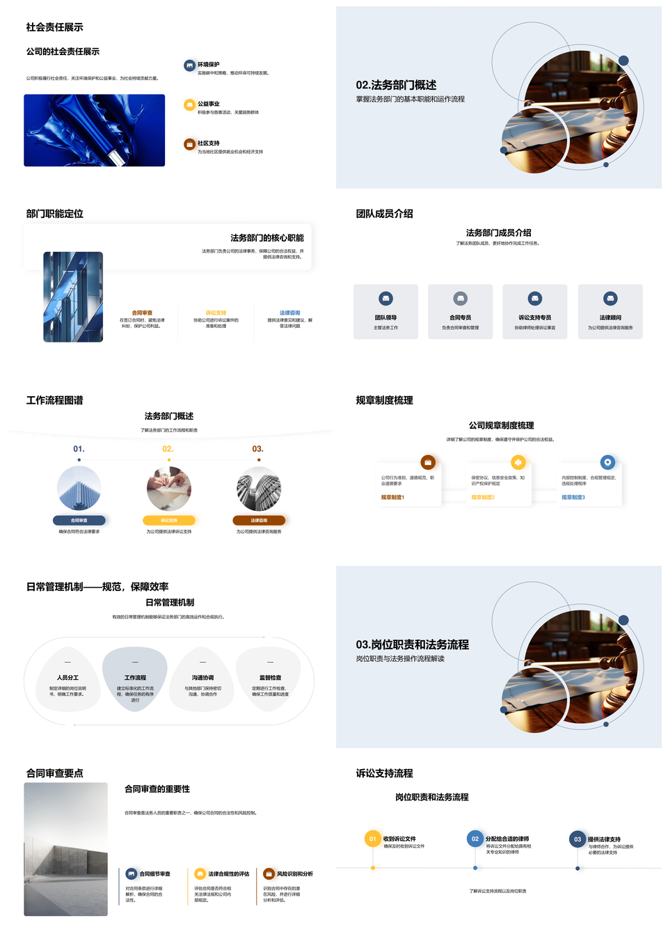 这是一张法务新员工职责制度合同审查诉讼咨询处罚指导PPT模板,包含法务、新员工、职责制度、合同审查、诉讼咨询、处罚指导等主题内容,也可用作法务新员工职责制度、新员工职责制度合同、职责制度合同审查、合同审查诉讼咨询、诉讼咨询处罚指导、法务新员工职责、新员工职责制度、职责制度合同、制度合同审查、合同审查诉讼、审查诉讼咨询、诉讼咨询处罚、咨询处罚指导、法务职责制度、合同审查诉讼等PPT场景使用。 风云办公提供的法务新员工职责制度合同审查诉讼咨询处罚指导PPT模板,下载格式为pptx,一共33页,作品中文字及图均可以修改和编辑,图片更改请在作品中右键图片并更换,文字修改请直接点击文字进行修改。