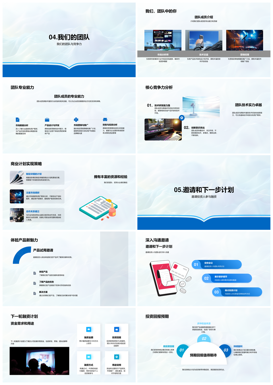 2025蓝色赢战职场科技蓝创业商业计划书PPT模板