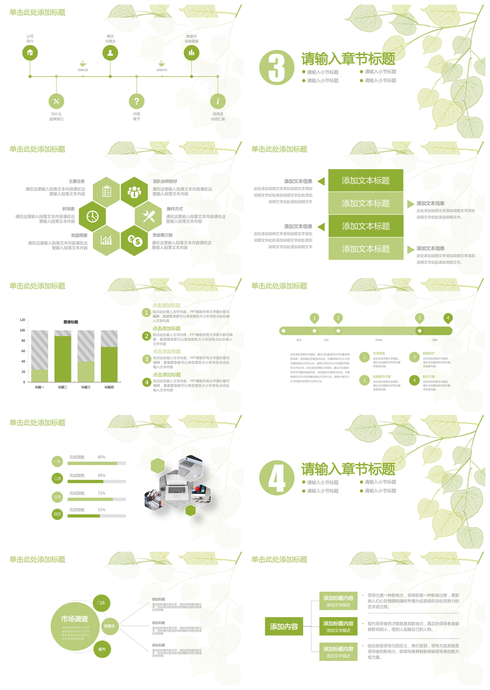 绿色文艺小清新商务年终总结汇报高端PPT模板