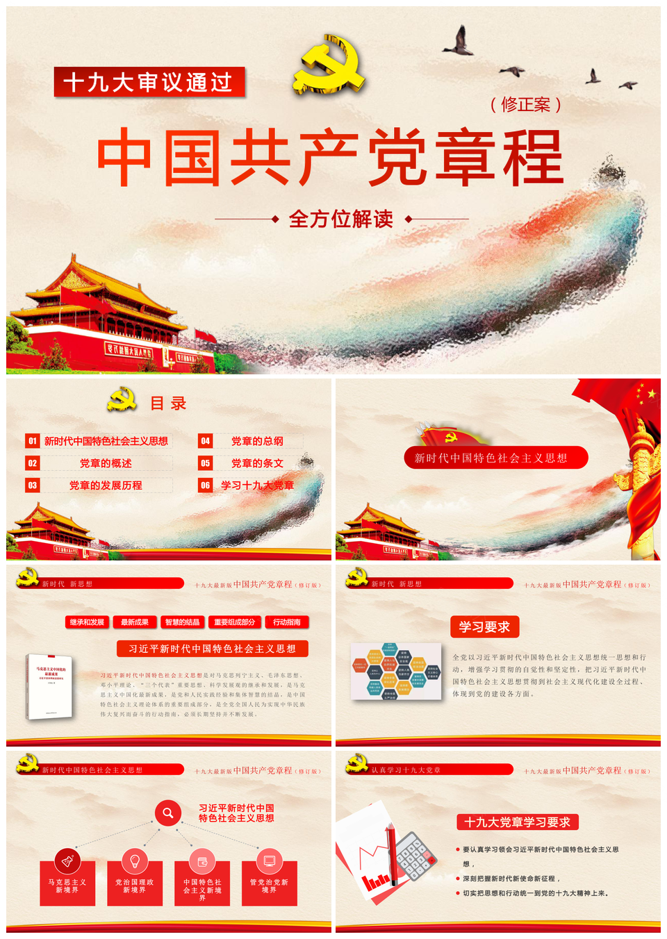 风云办公提供的红色党章党规学习解读PPT模板,下载格式为pptx,一共83页,作品中文字及图均可以修改和编辑,图片更改请在作品中右键图片并更换,文字修改请直接点击文字进行修改。