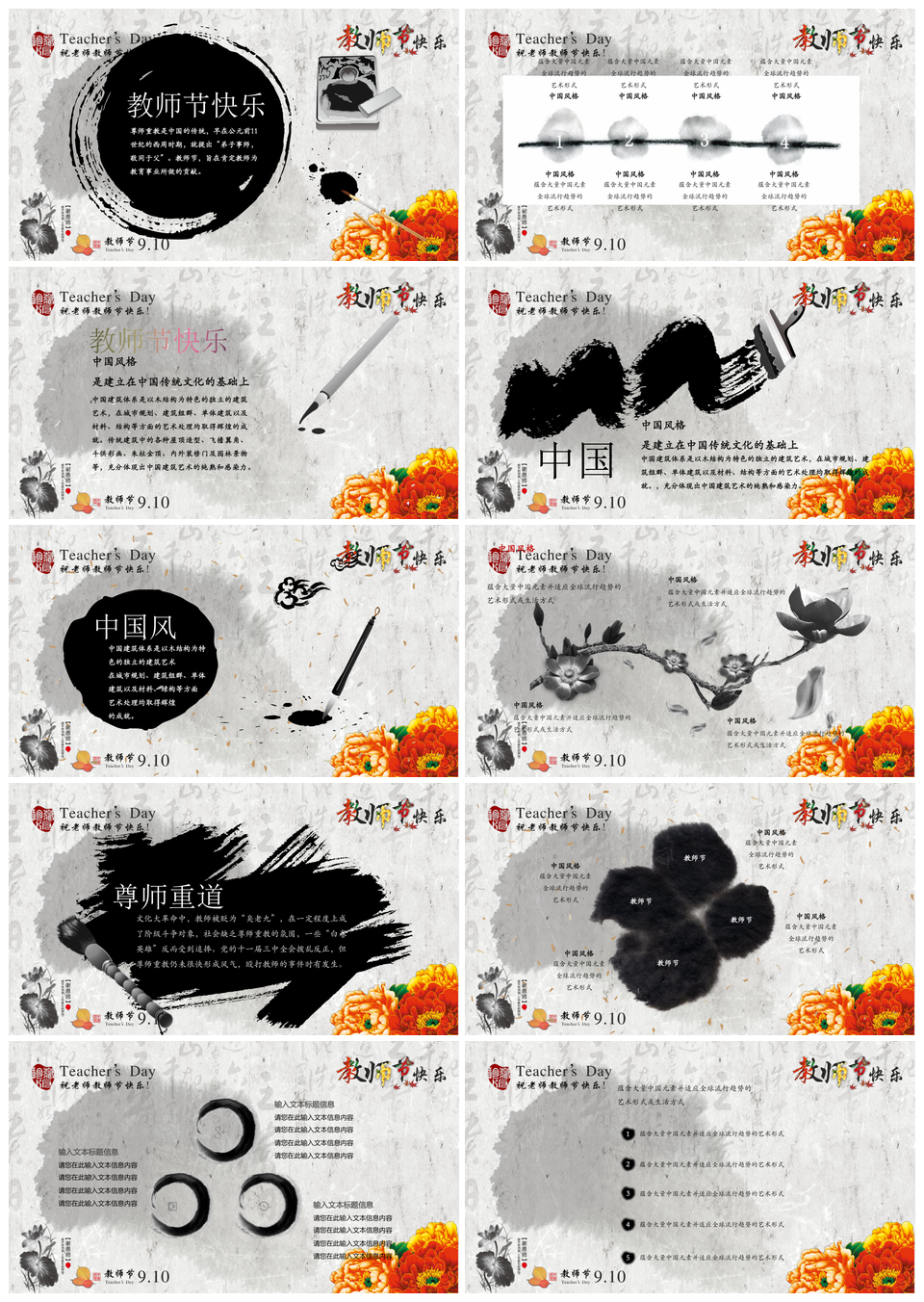 水墨教师节快乐感恩老师动态PPT模板