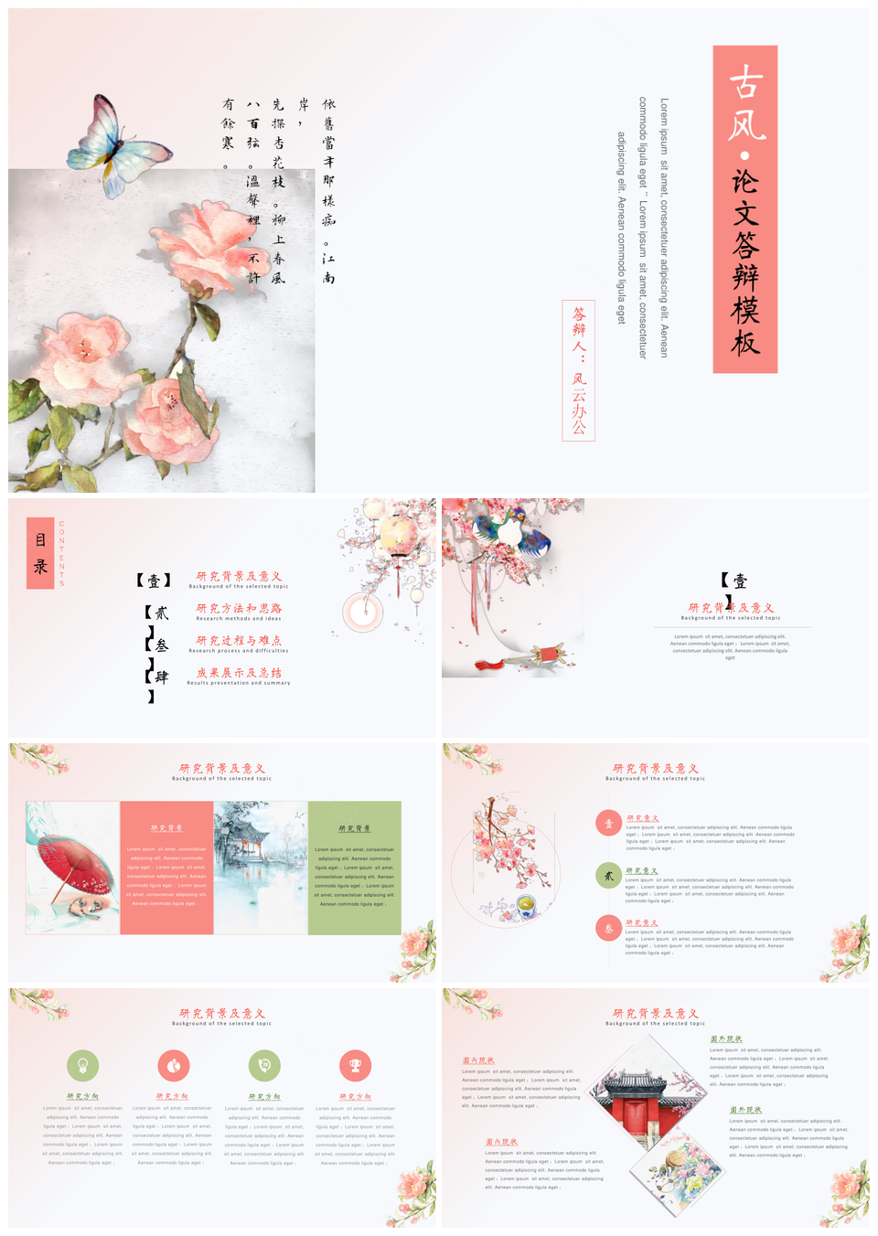 这是一张彩色古风论文答辩精美PPT模板,包含彩色、古风、论文答辩等主题内容,也可用作彩色古风论文答辩、彩色古风论文、彩色古风答辩、古风论文答辩、彩色论文答辩、彩色古风、古风论文、论文答辩等PPT场景使用。 风云办公提供的彩色古风论文答辩精美PPT模板,下载格式为pptx,一共25页,作品中文字及图均可以修改和编辑,图片更改请在作品中右键图片并更换,文字修改请直接点击文字进行修改。