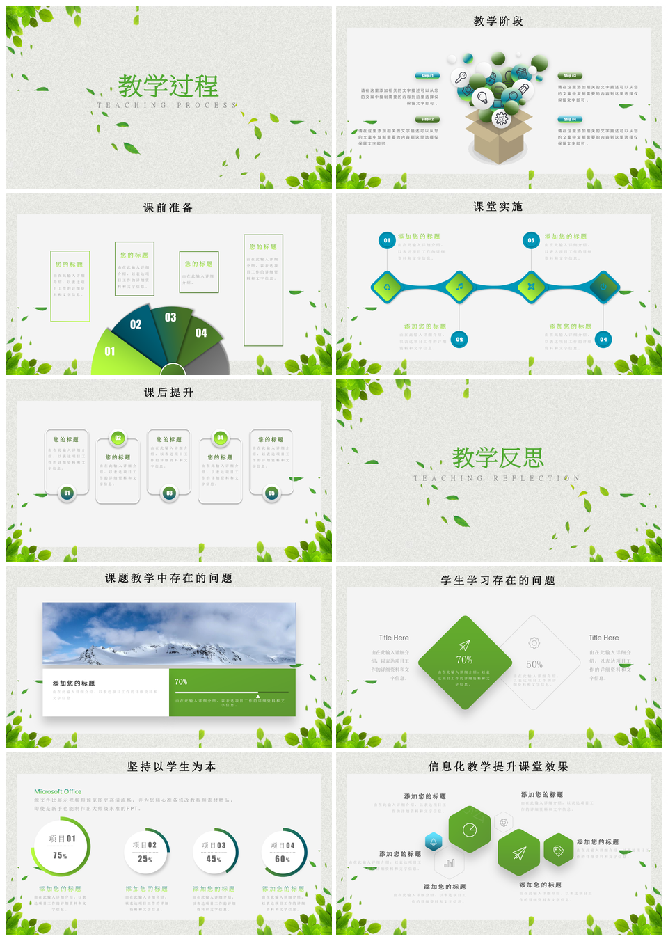 风云办公提供的绿色教师说课教学可编辑PPT模板,下载格式为pptx,一共28页,作品中文字及图均可以修改和编辑,图片更改请在作品中右键图片并更换,文字修改请直接点击文字进行修改。