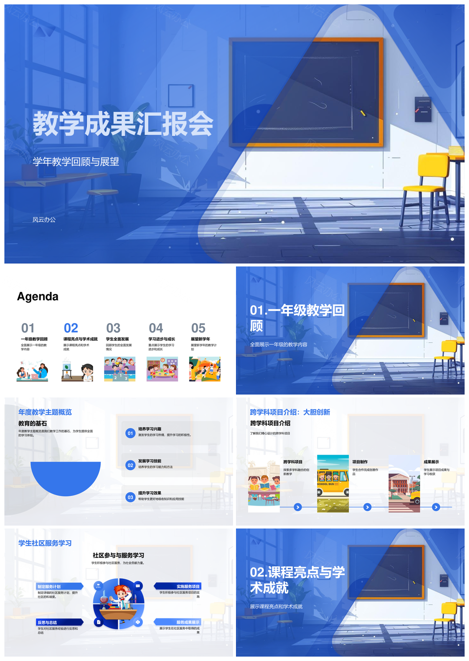 风云办公提供的教学成果汇报会年度主题跨学科项目PPT模板,下载格式为pptx,一共23页,作品中文字及图均可以修改和编辑,图片更改请在作品中右键图片并更换,文字修改请直接点击文字进行修改。
