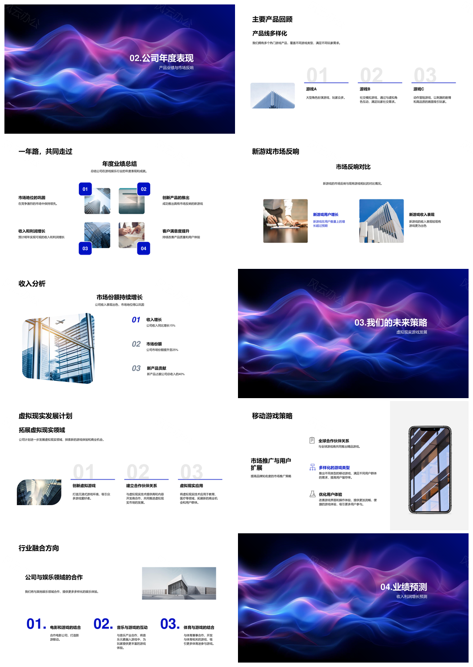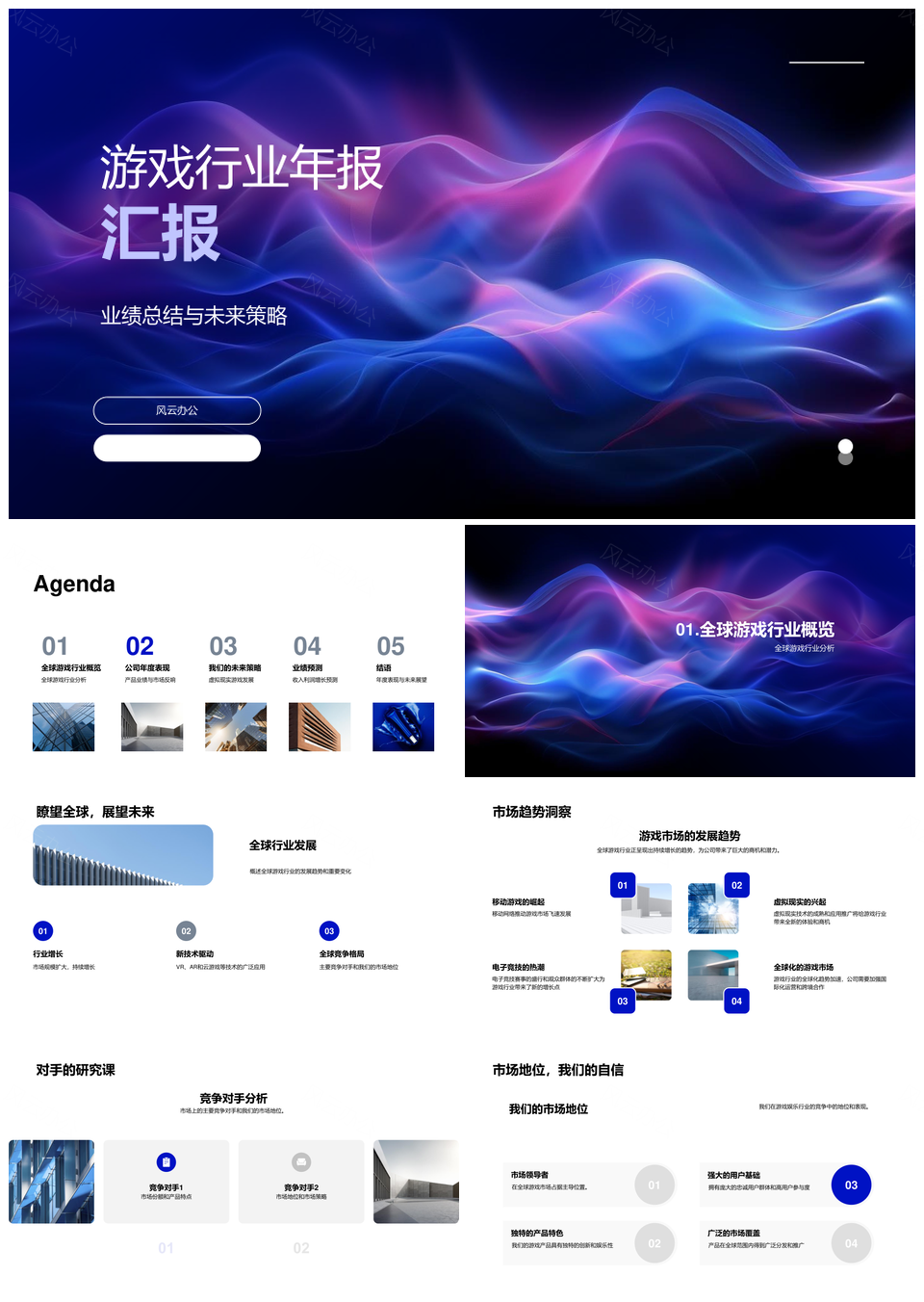 这是一张全球游戏年报市场趋势竞品分析VR移动业绩PPT模板,包含全球、游戏、年报、市场、趋势、竞品、分析、VR、移动、业绩等主题内容,也可用作全球游戏年报市场趋势、年报市场趋势竞品分析VR、市场趋势竞品分析VR移动、竞品分析VR移动业绩、全球游戏市场趋势、年报市场趋势竞品分析、市场趋势竞品分析VR、竞品分析VR移动、VR移动业绩全球、全球游戏年报市场、游戏年报市场趋势、市场趋势VR移动业绩、全球游戏年报VR、VR移动业绩市场趋势、全球市场趋势竞品分析等PPT场景使用。 风云办公提供的全球游戏年报市场趋势竞品分析VR移动业绩PPT模板,下载格式为pptx,一共25页,作品中文字及图均可以修改和编辑,图片更改请在作品中右键图片并更换,文字修改请直接点击文字进行修改。