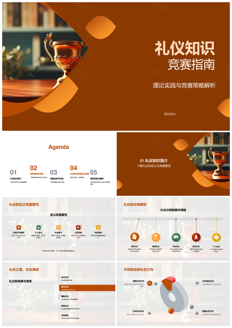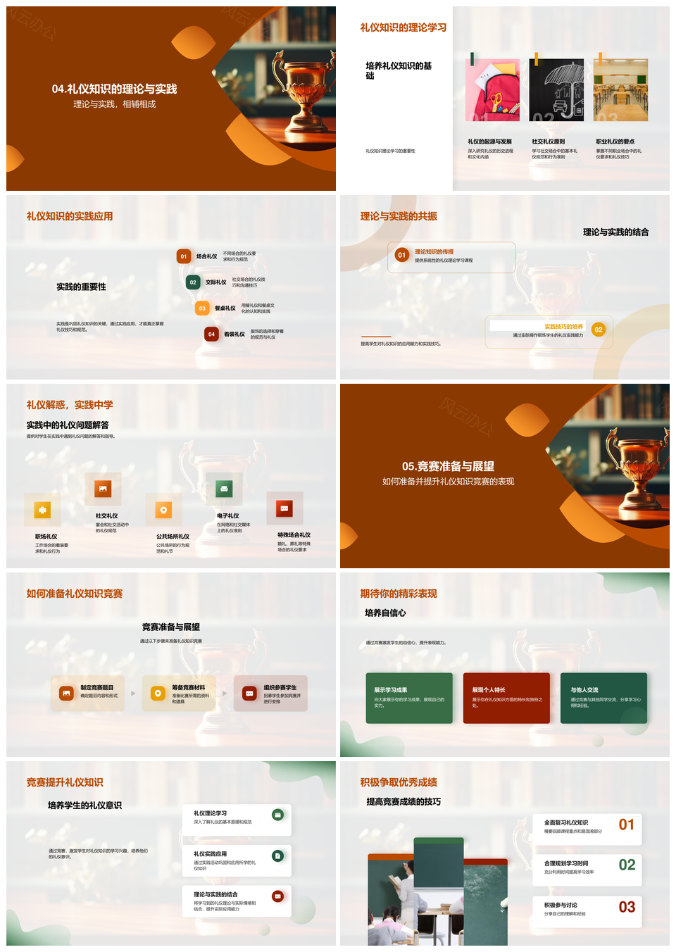 礼仪知识竞赛理论实践策略文化礼仪分类规则奖杯PPT模板